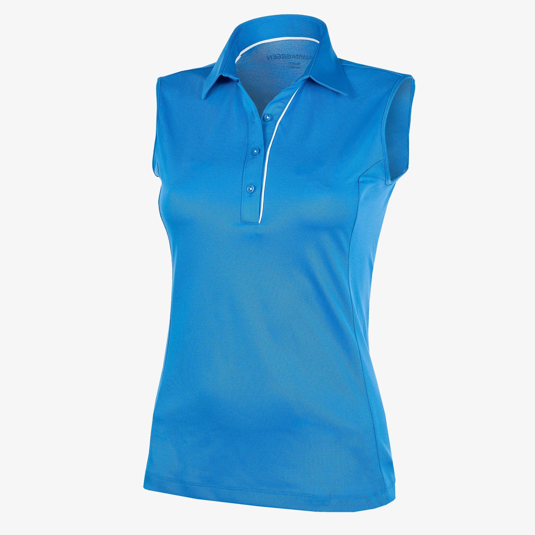 Hot days call for lightweight shirts — Meg is a women's sleeveless polo made from an extremely breathable, quick dry fabric. Part of Galvin Green’s high-tech VENTIL8™ PLUS shirt collection, Meg offers UV factor 20+, ensuring an added layer of protection on sunny days.