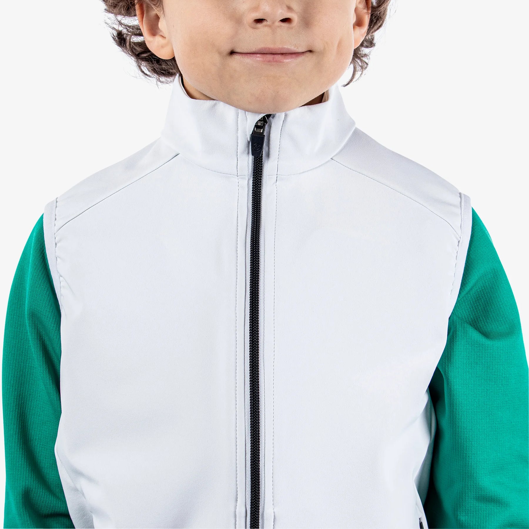 Rio is a Windproof and water repellent golf vest for Juniors in the color White(1)
