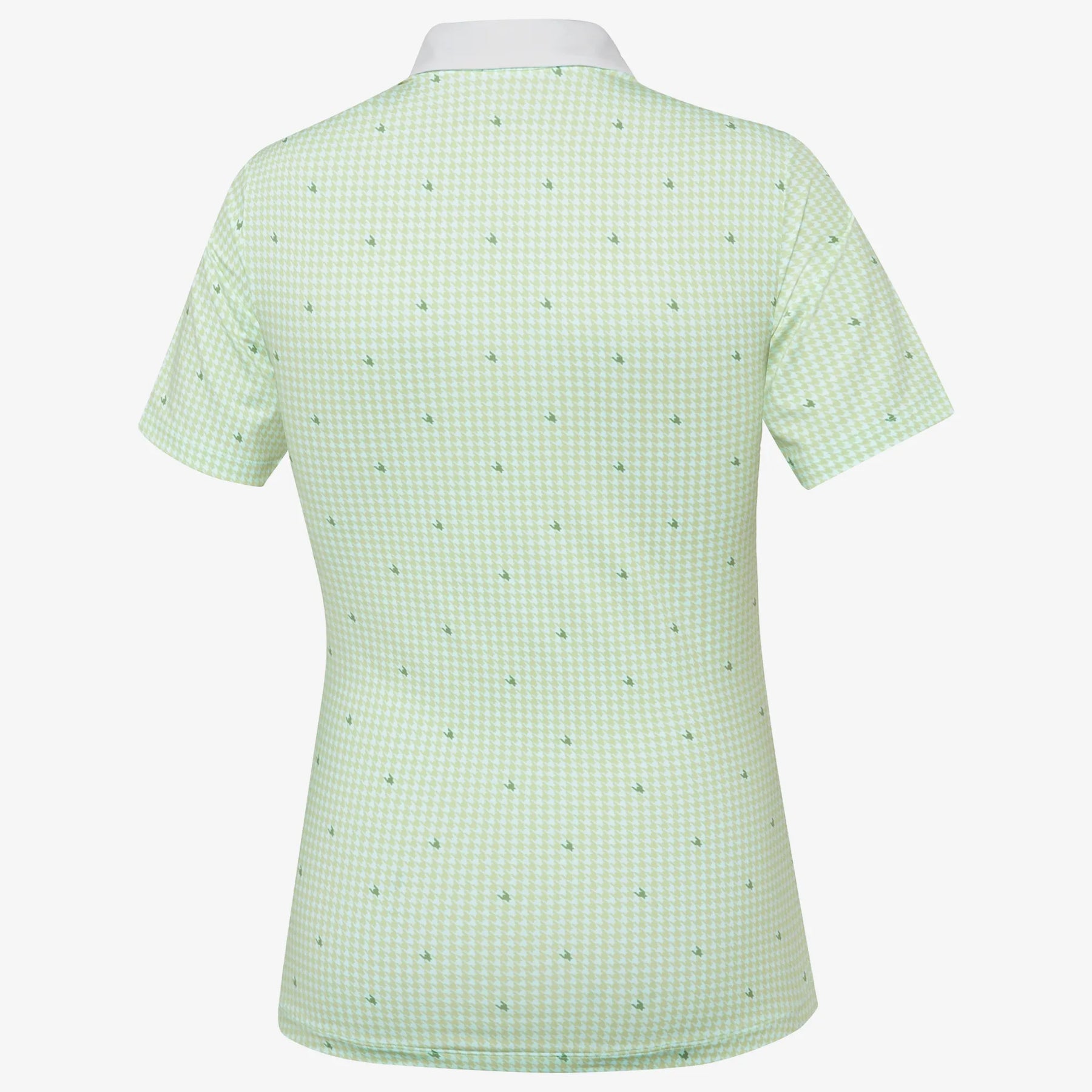 The Marlene polo shirt seamlessly combines form and function with its small‑scale houndstooth print and high‑performance VENTIL8™ PLUS technology. Made from stretch fabric, it provides exceptional breathability, quick‑dry performance, and UV 20+ protection for all‑day comfort on the golf course. The tailored collar and single‑fold sleeve hem add a polished finish to this soft, comfortable, and versatile shirt.