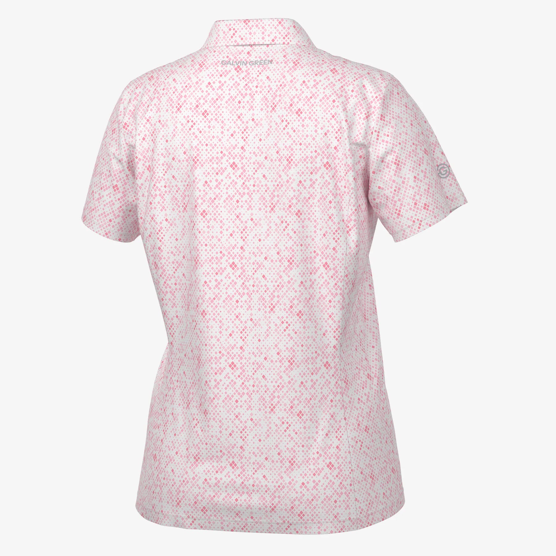 Small argyle-inspired diamonds are arranged to create a sporty snakeskin effect on this short sleeve VENTIL8™ PLUS shirt, which mixes and matches beautifully with white, blue, pink, or navy bottoms. Designed with stretch fabric, Maud provides superior breathability and quick-drying comfort to keep you at your best. With UV protection (20+) and a tailored collar, this shirt combines style, comfort, and performance for the modern golfer.