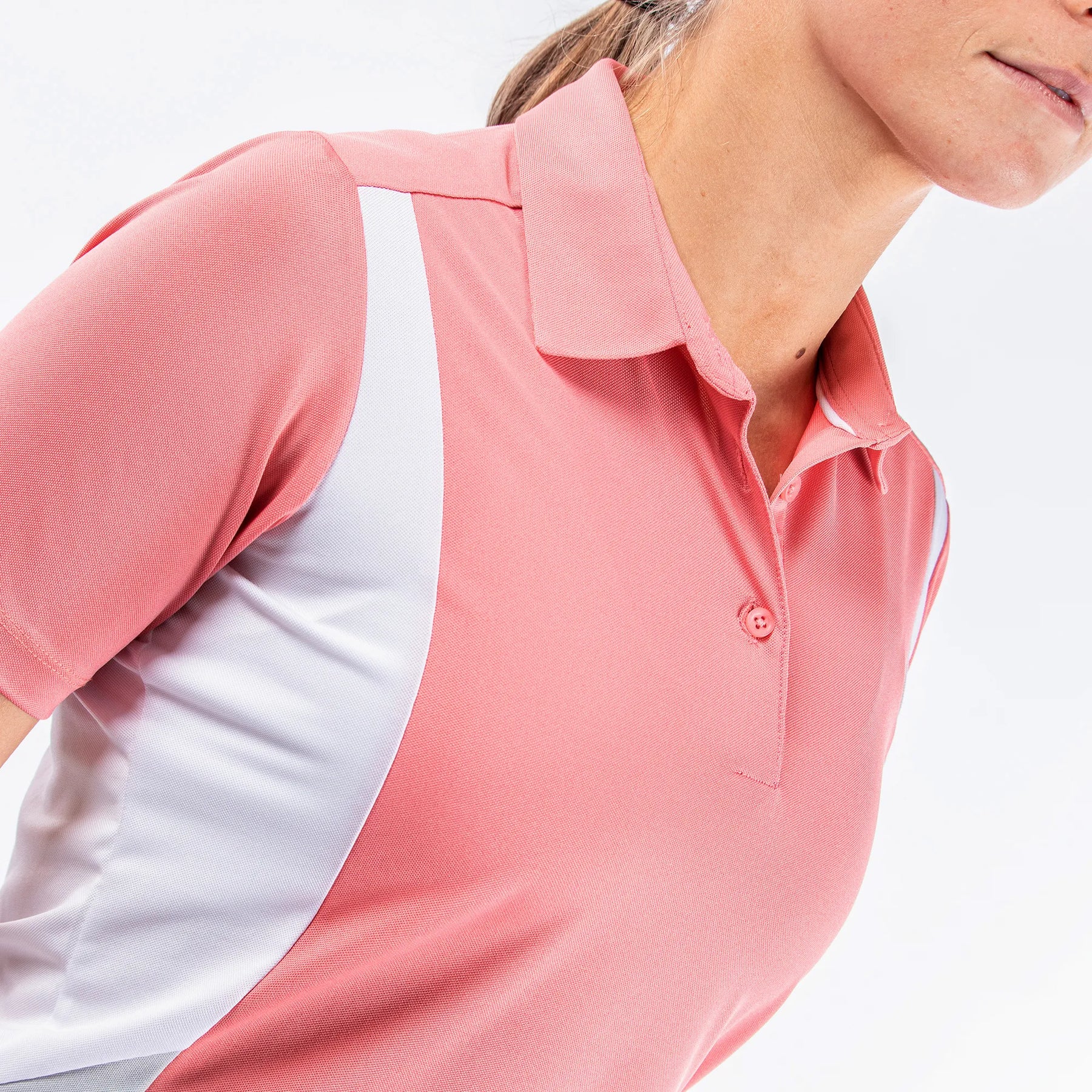 Melanie is a Breathable short sleeve golf shirt for Women in the color Coral/White/Cool Grey(8)