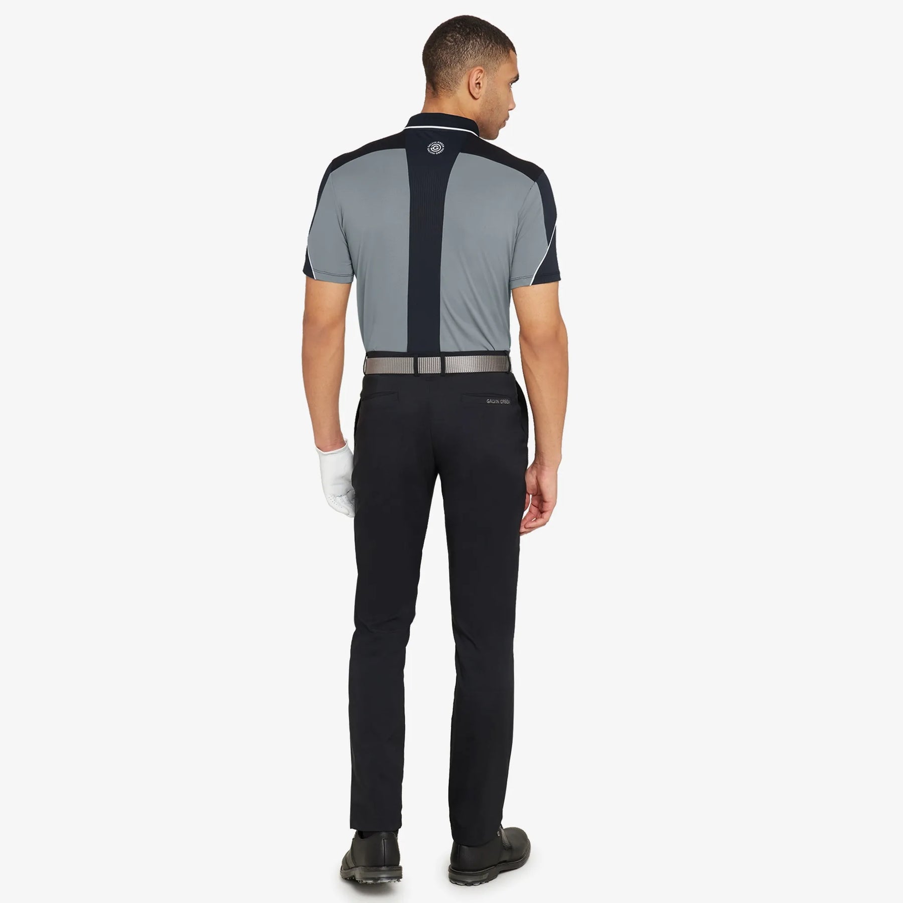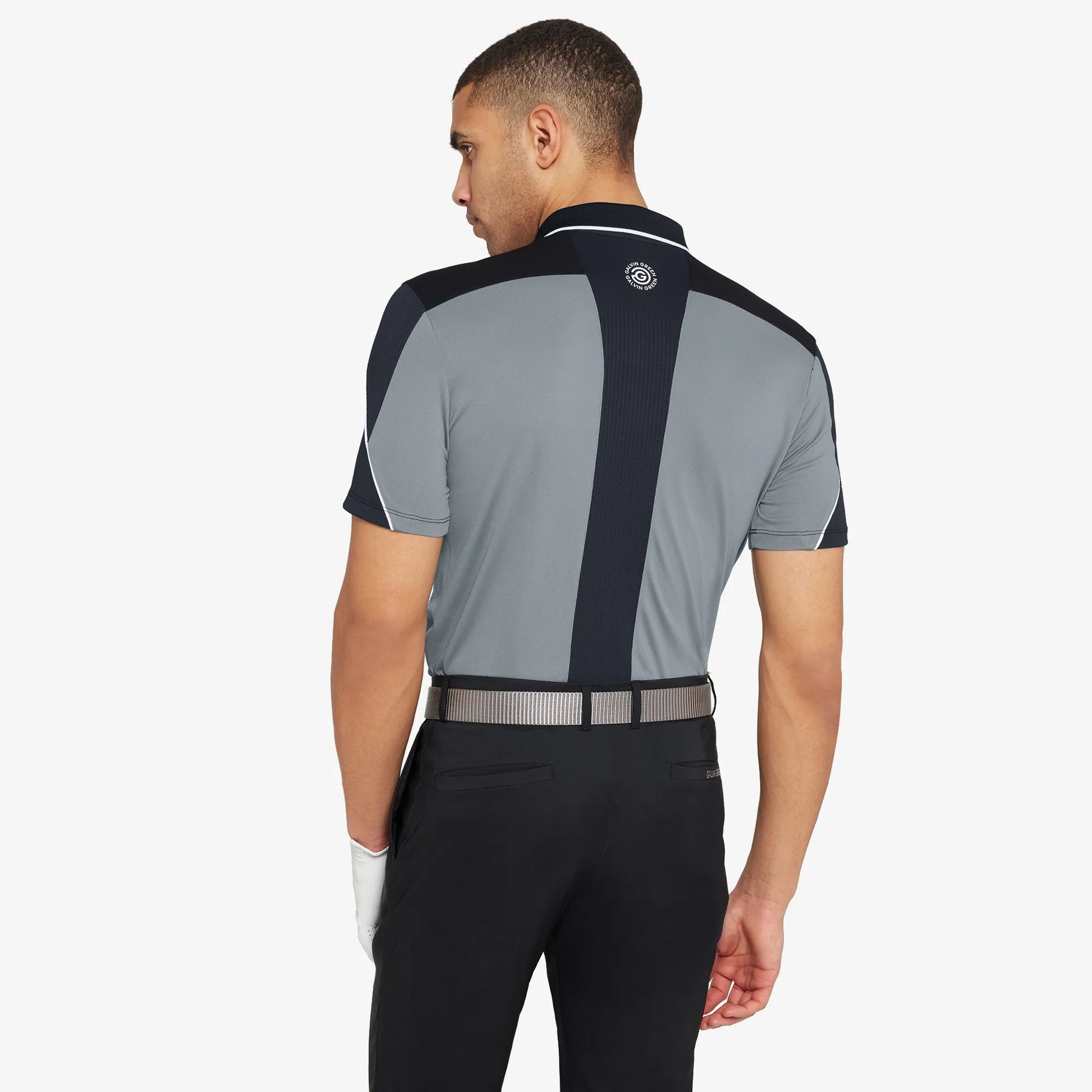The Monte polo shirt features a ribbed collar with a contrasting stripe, colour-blocked front and back panels, and a bold centre-back stripe for a modern twist on a classic design. Featuring VENTIL8™ PLUS technology, it delivers extreme breathability, rapid moisture wicking, and UV 20+ protection in a soft, stretchy fabric. Finishes include a tailored collar and single‑fold sleeve hem.