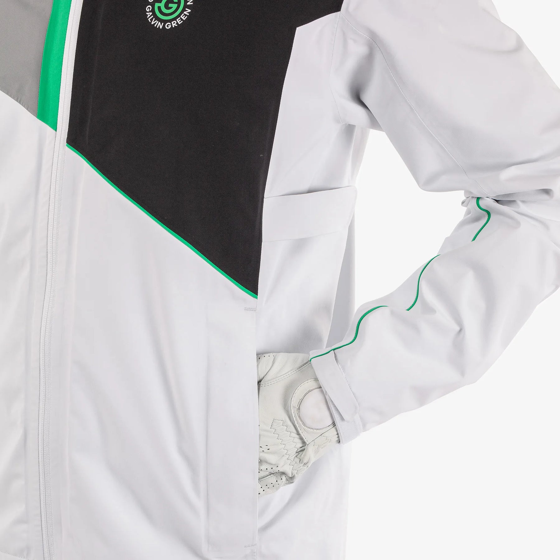 Apollo  is a Waterproof golf jacket for Men in the color White/Black/Green(3)