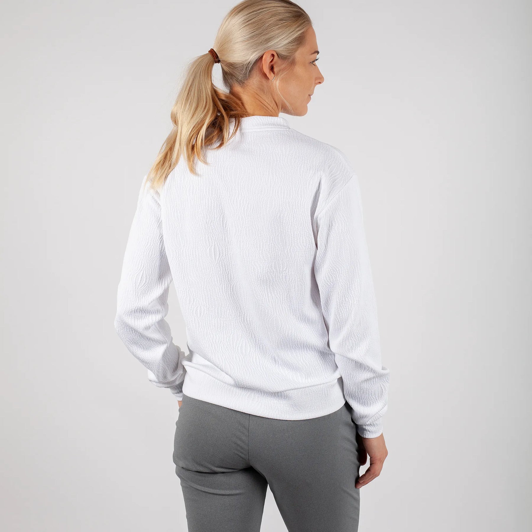 Dalia is a women’s golf sweatshirt made from a soft, jacquard knitted INSULA™ fabric designed to be breathable while it keeps you warm. Galvin Green’s high-tech INSULA™ material is extremely breathable and quick dry, making it ideal for sports. With warming effect #2, this women’s golf sweatshirt will also provide thermal insulation and can be worn as a top layer on warm days, or a mid layer when the conditions are cool.