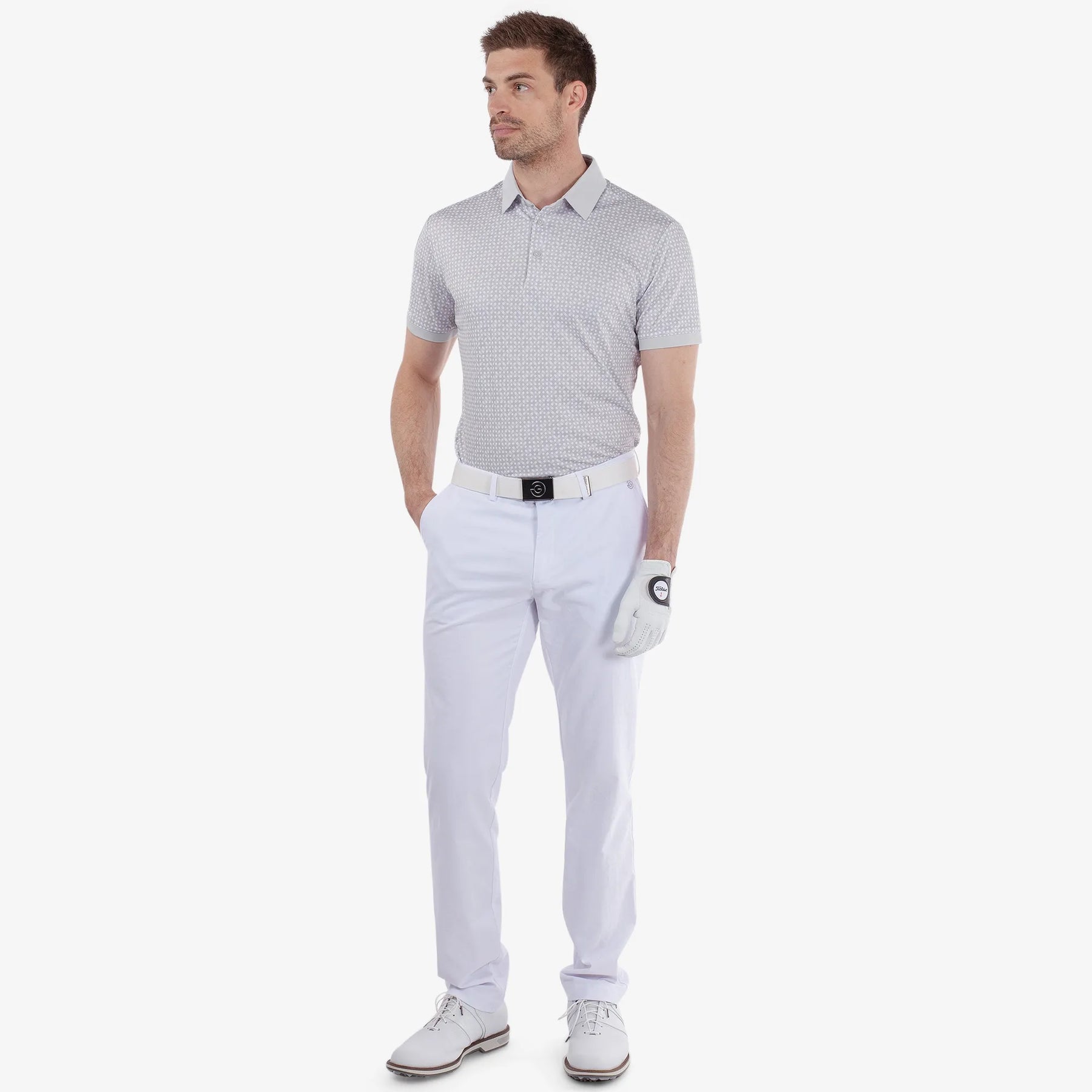 Melvin is a Breathable short sleeve golf shirt for Men in the color Cool Grey/White(3)