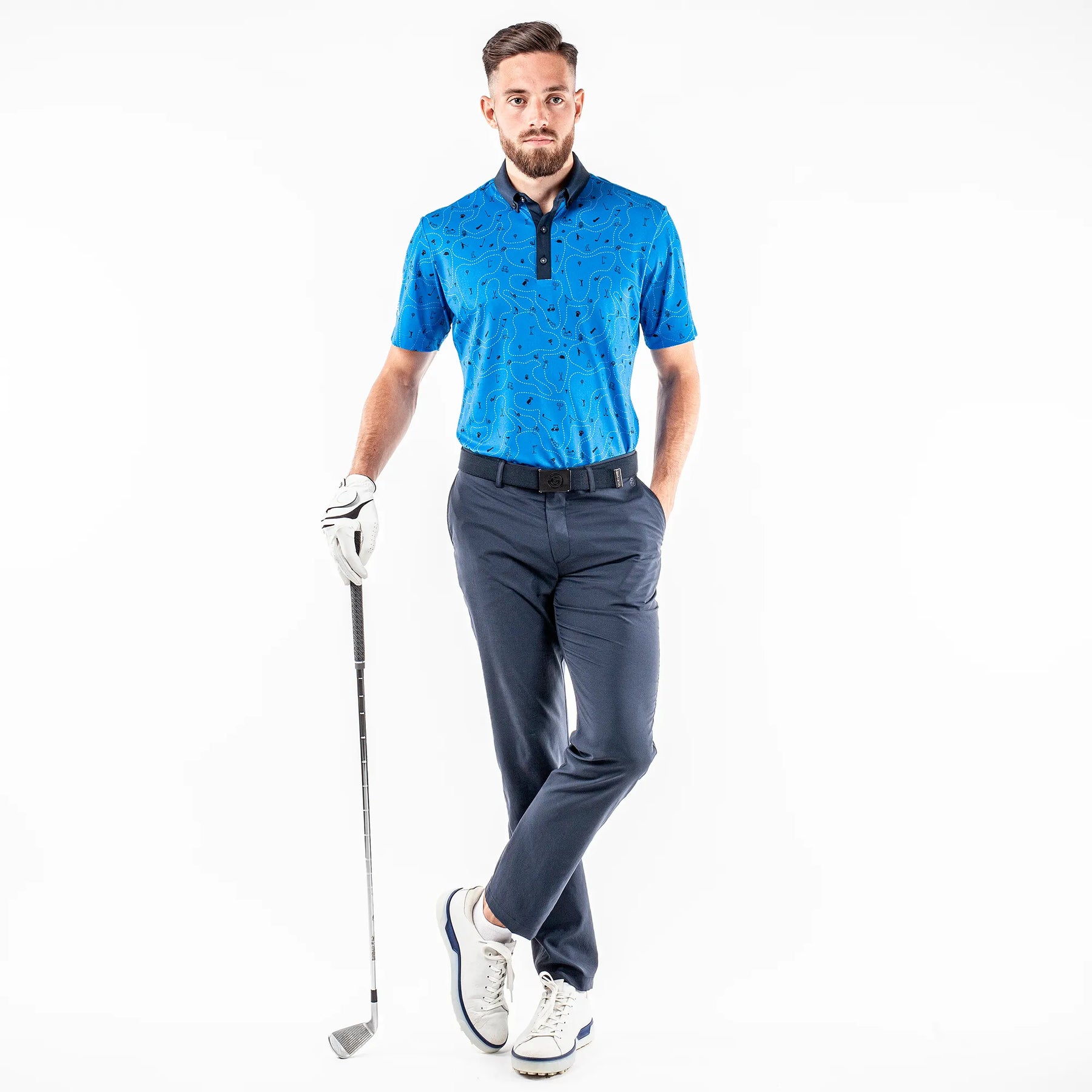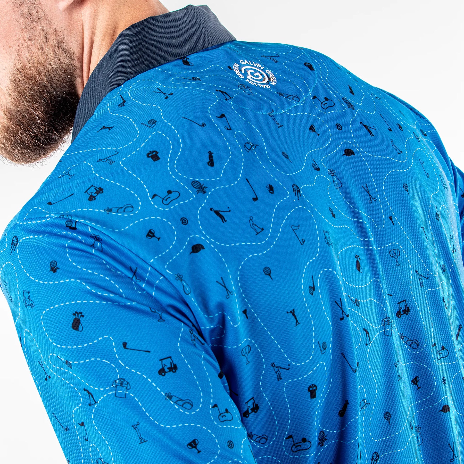 Miro is a playful men’s golf shirt with a small scale golf themed print. Made from an extremely breathable VENTIL8™ PLUS fabric, this shirt’s UV factor of 20+ offers light sun protection, while being quick dry to ensure you are comfortable on a hot day. Made from a soft, stretchy fabric, Galvin Green’s high tech polo shirts are tested on the golf course for functionality and comfort..