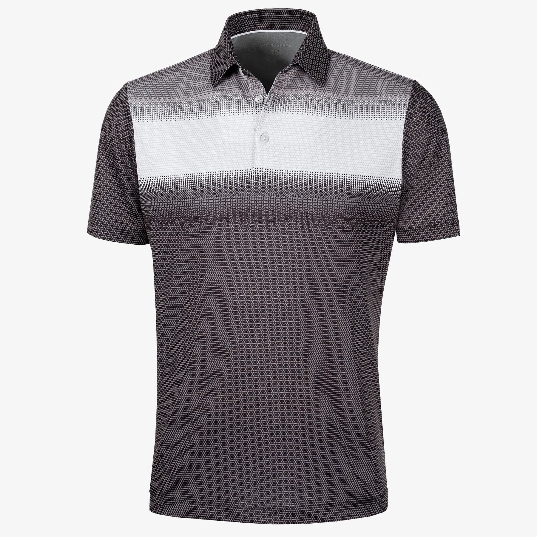 A short sleeve VENTIL8™ PLUS shirt, MIRCA’s standout detail is a cross-body gradient stripe print along the chest. With a tailored collar and a range of colours, MIRCA is a stylish shirt designed to match shorts and pants from our men’s apparel range. Made from an extremely breathable, quick dry fabric, this gradient stripe golf polo shirt is designed for comfort and functionality on the golf course.