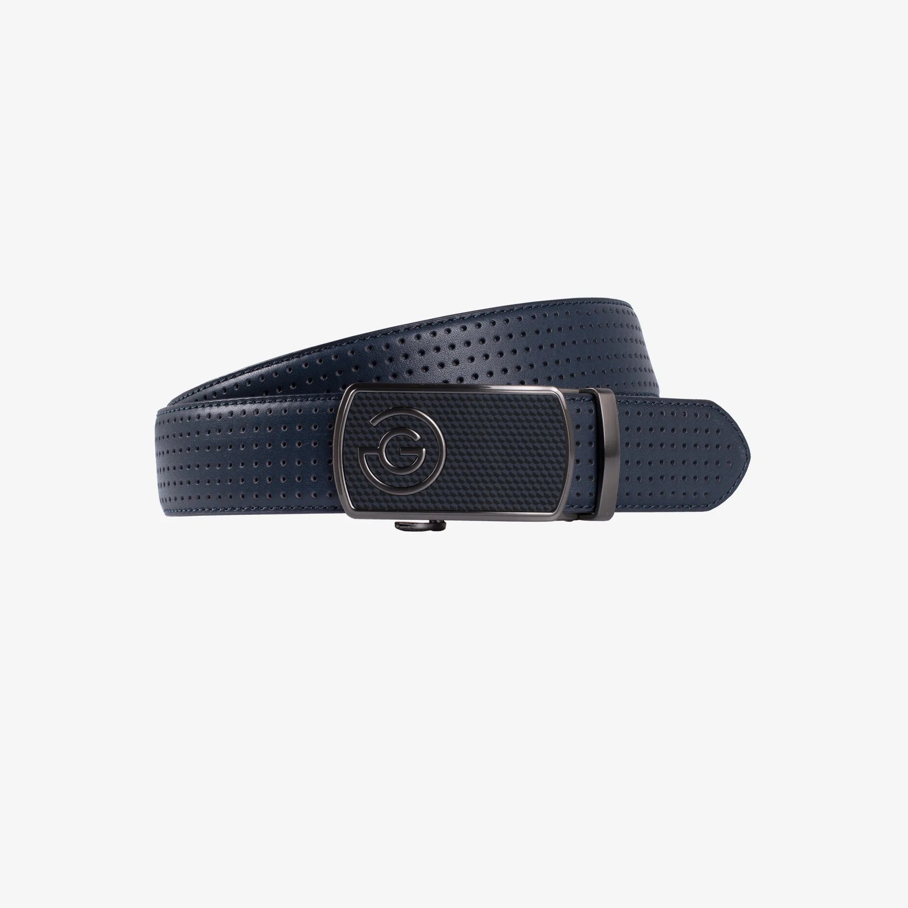West is a leather golf belt with a track fit system, allowing the length to be easily adjustable without the restrictions of placed belt holes.