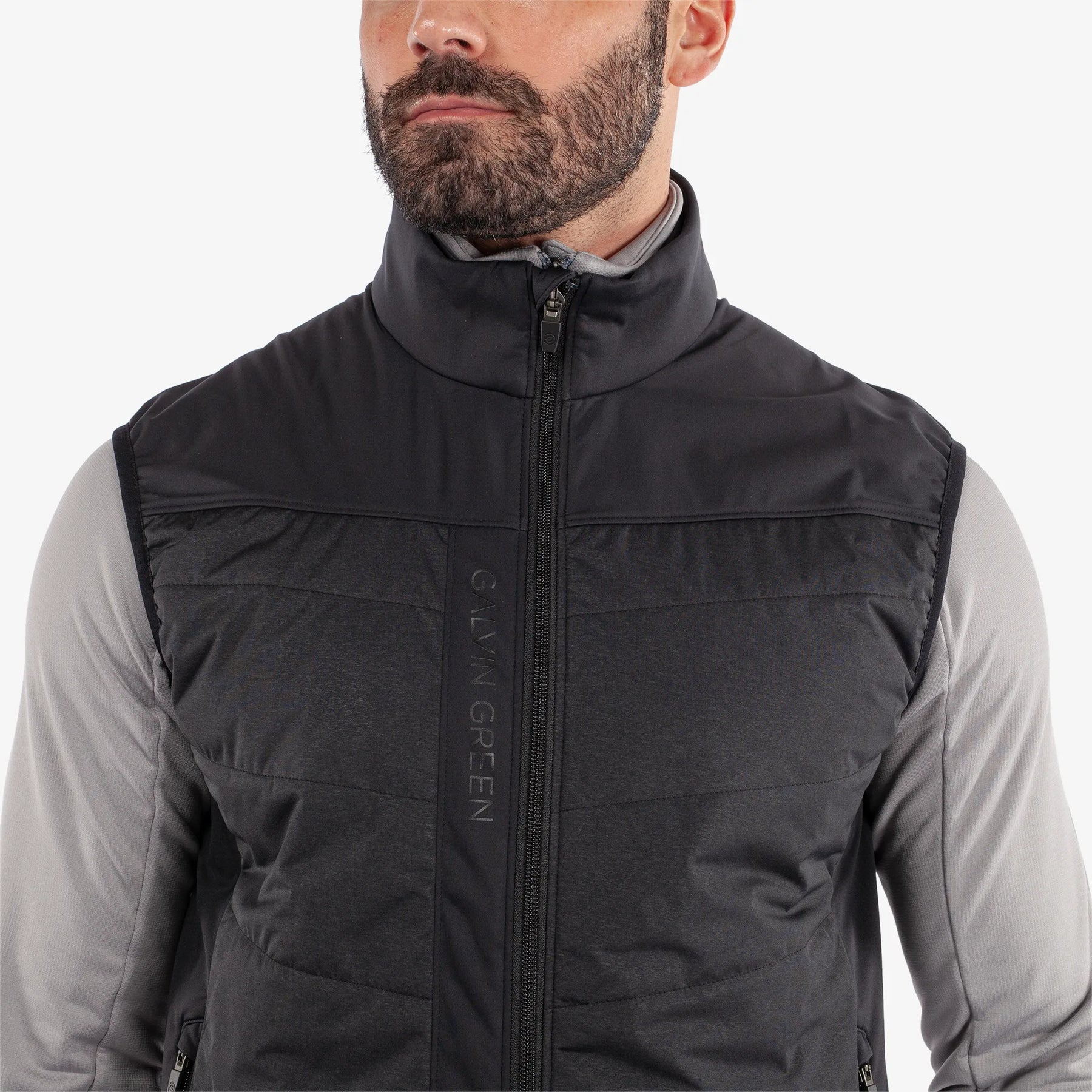 Introducing Lauro, a windproof and water resistant padded golf vest with a contoured and streamlined paneling on the chest and back. As part of Galvin Green's INTERFACE-1™ range, the Lauro is a practical, high-tech golf garment. Made from a soft, stretchy fabric, it boasts exceptional breathability and an impressive warming effect rating of #3, delivering unmatched warmth and comfort.