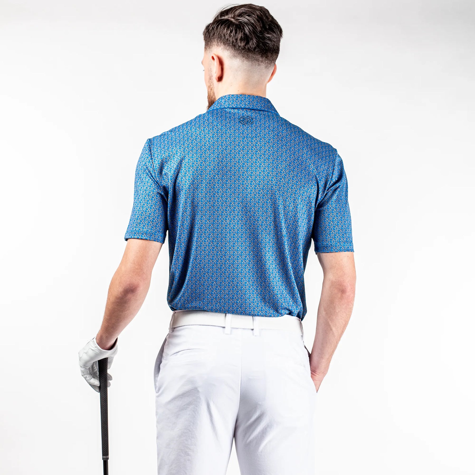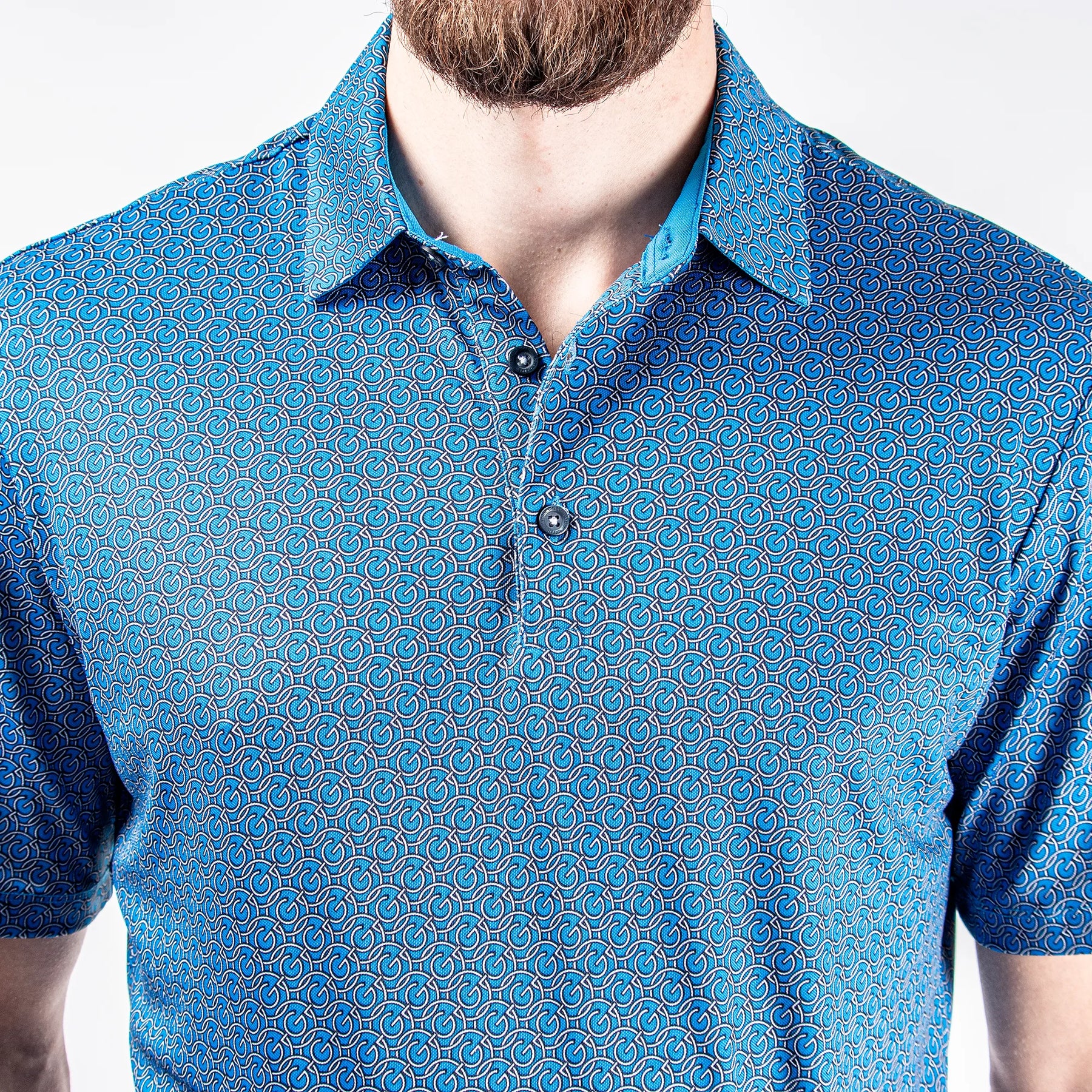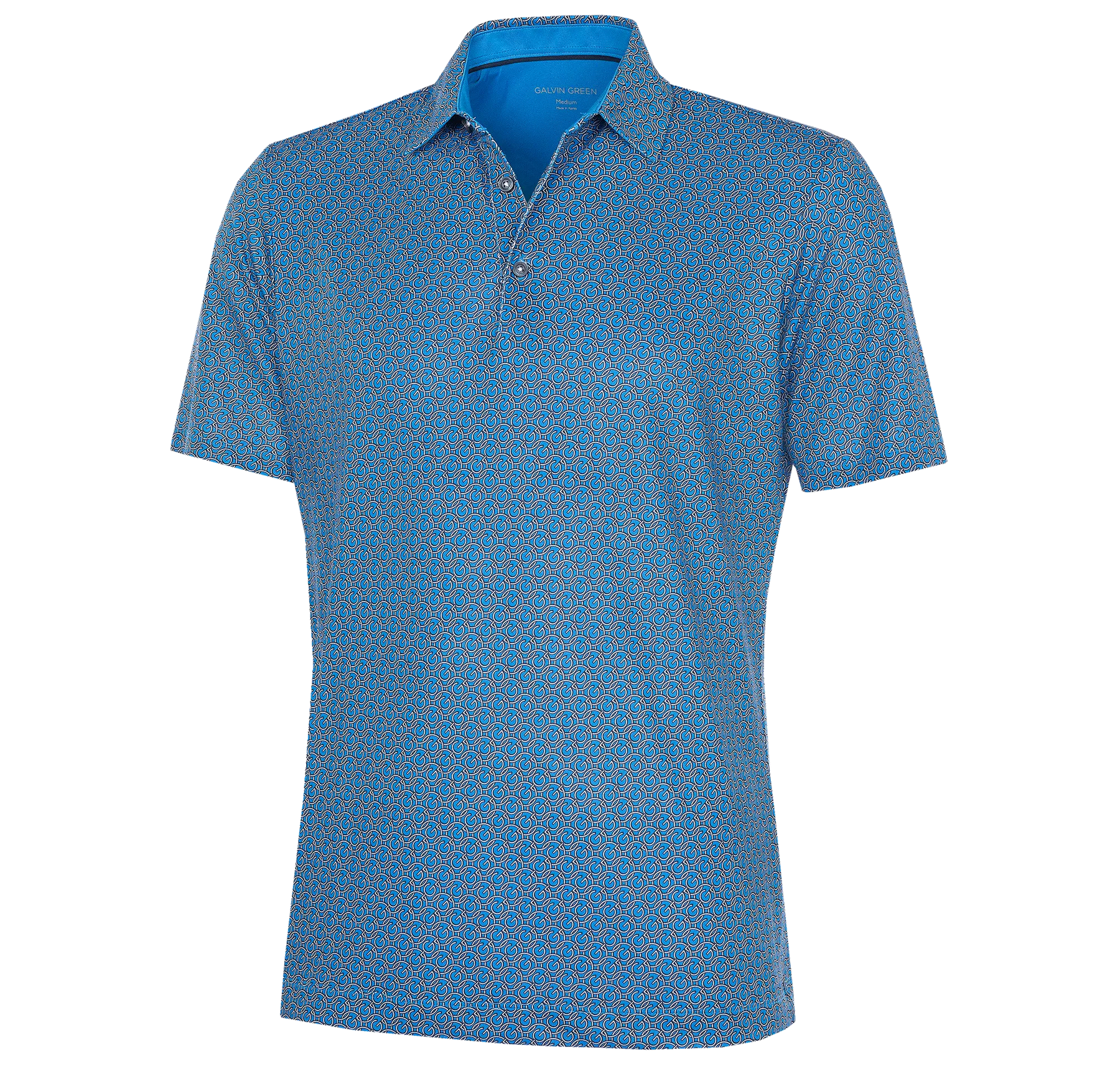 This fully printed polo shirt has an allover G logo chain pattern and is made from Galvin Green’s high tech VENTIL8™ PLUS fabric. Extremely breathable and quick dry, this material is ideal for golf shirts, ensuring you stay cool and dry while you play.