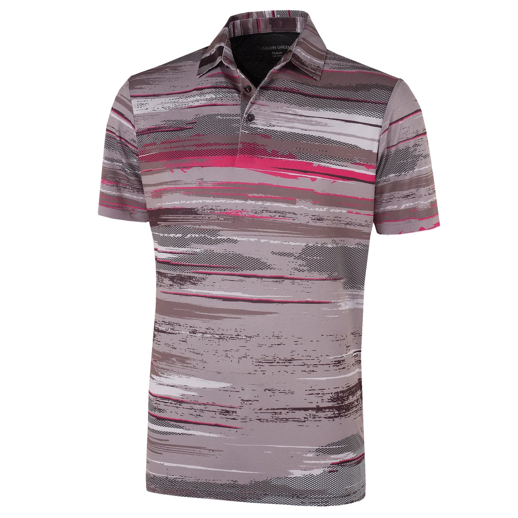 Mathew is a short sleeve polo for men with an eye-catching allover print inspired by bold stripes. Extremely breathable, lightweight, and moisture-wicking, this shirt is part of Galvin Green’s VENTIL8™ PLUS range, a collection of high tech performance golf shirts designed to ensure comfort and style on the golf course and in the club house.