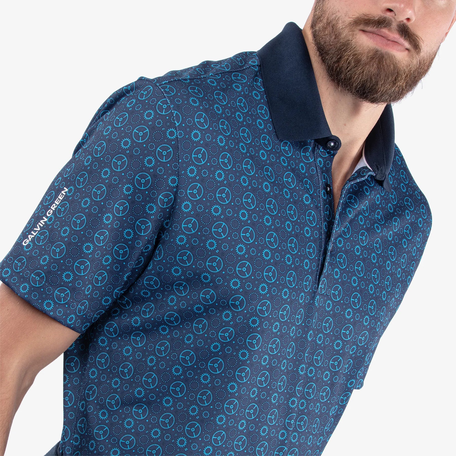 Miracle is a Breathable short sleeve golf shirt for Men in the color Aqua/Navy(5)