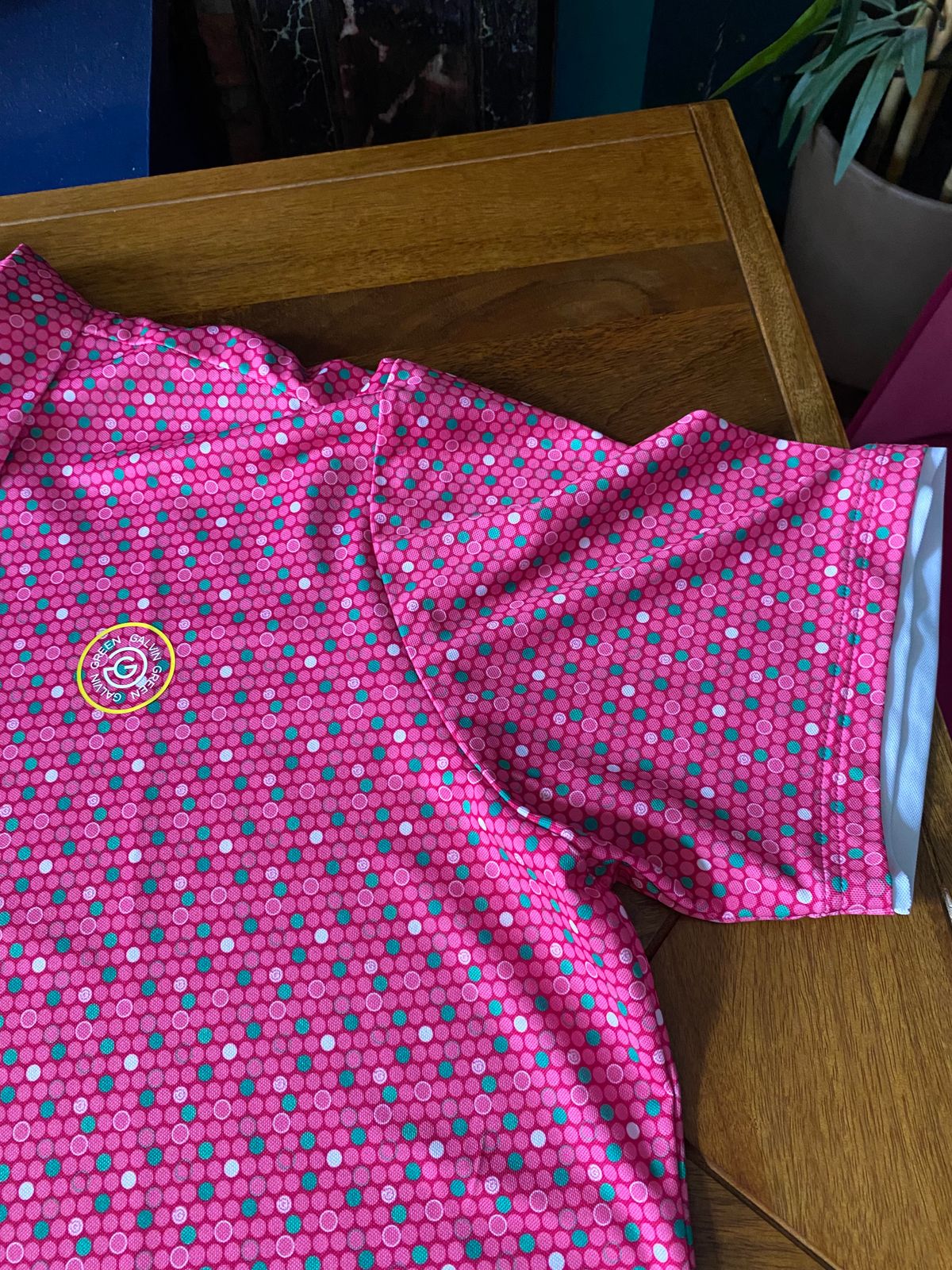 I have a few Galvin Green polo golf shirts and absolutely love them but the thing about this one which caught my eye was the fantastic colours running through it and the finish on the bottom of the sleeves.The yellow emblem on the front also makes it stand out plus the yellow Galvin Green on the back of the neck.Lovely light material as well so definitely a 10/10 for me.
