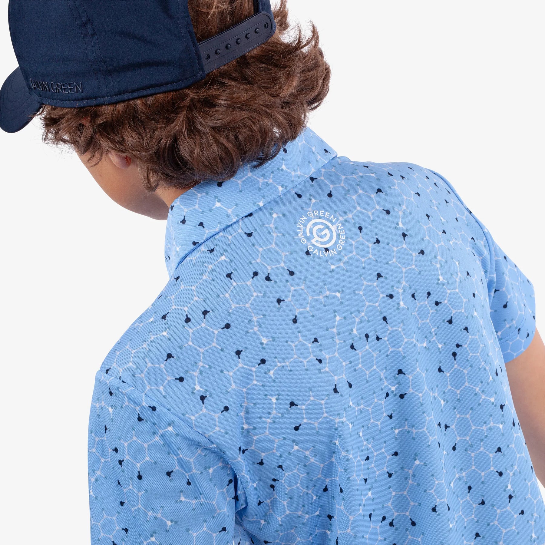 Meet Rocco, a lightweight, breathable junior golf shirt with an all-over print inspired by molecule structure. Galvin Green’s VENTIL8™ PLUS shirt range features high-tech golf polo shirts designed to keep you cool and comfortable on the golf course.