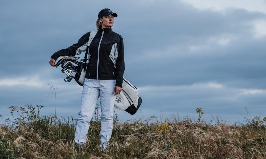 It may seem obvious, but women’s golf clothing for rainy weather should be 100% waterproof. Beyond that, however, what you might choose depends on how cold it is as well: if it’s just drizzly but relatively warm, an unlined, lightweight women’s golf rain jacket should do the trick, while cold, wet weather calls for pieces that are both waterproof and lined for extra warmth.