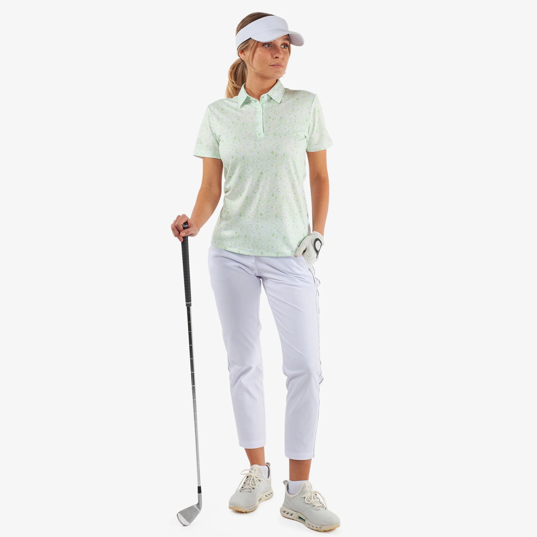 Maud is a Breathable short sleeve golf shirt for Women in the color White/Fresh Green(6)