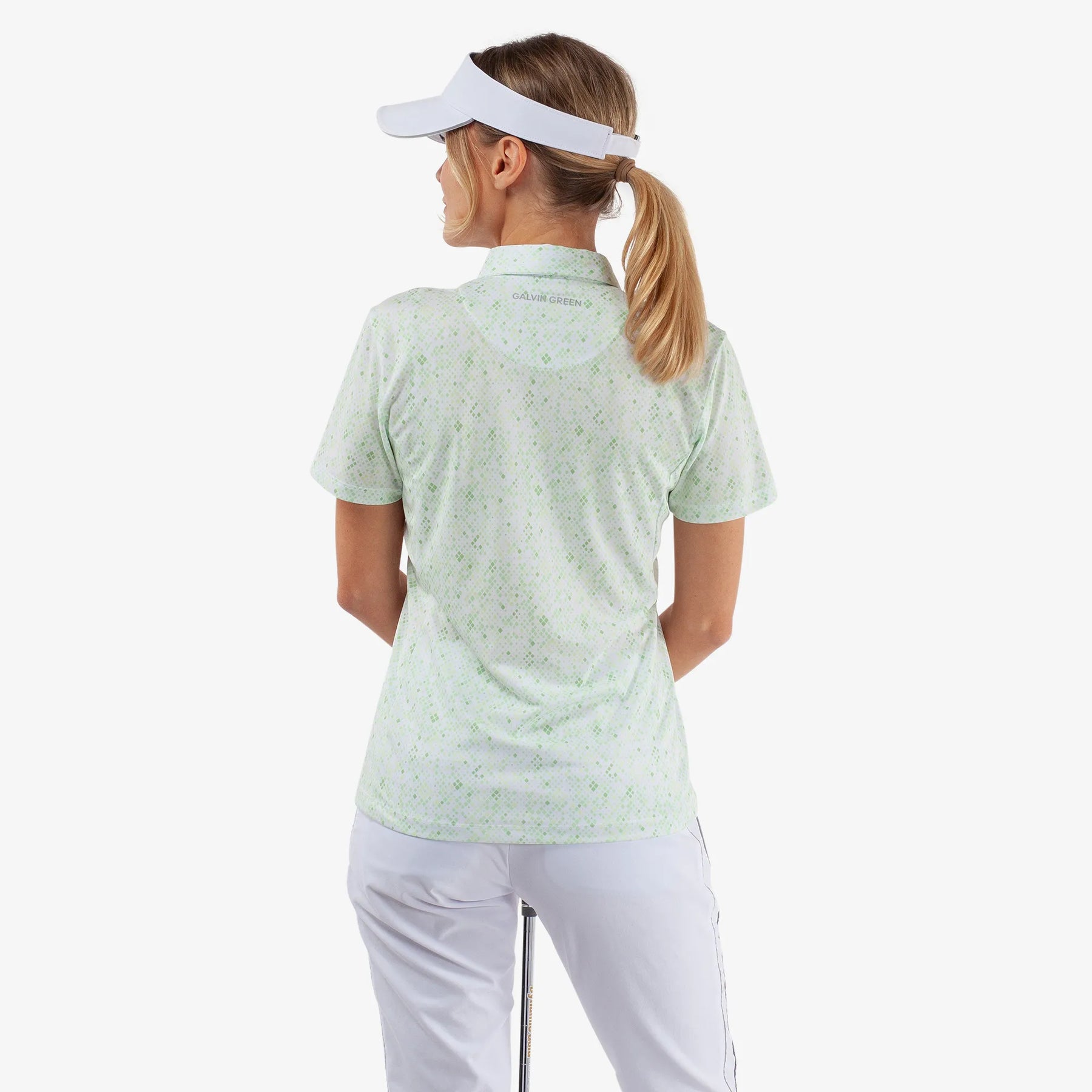 Maud is a Breathable short sleeve golf shirt for Women in the color White/Fresh Green(2)