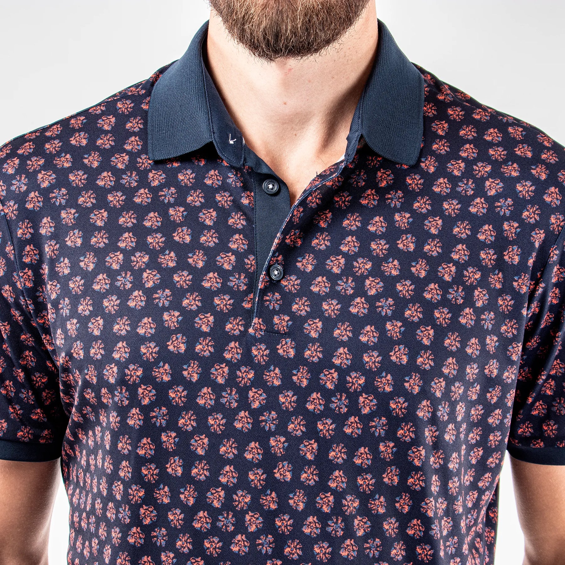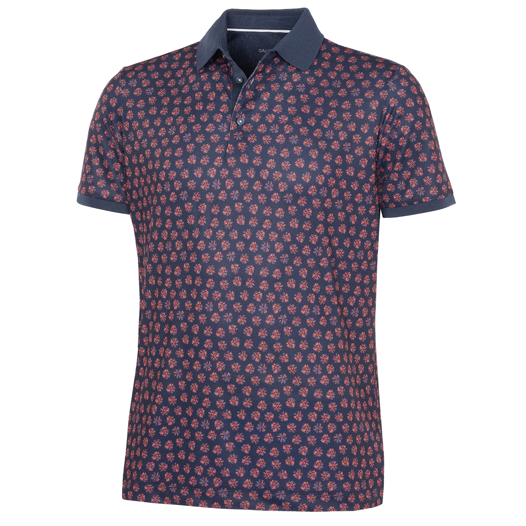 Murphy is a breathable short sleeve polo shirt with an allover floral print and contrasting ribbed knit collar, placket, and cuffs. Galvin Green’s VENTIL8™ PLUS golf shirt range is a high-tech collection of performance driven shirts designed to be functional and stylish. The Murphy shirt is made from an extremely breathable fabric that is quick dry, ensuring you are comfortable on the golf course when it’s hot outside.