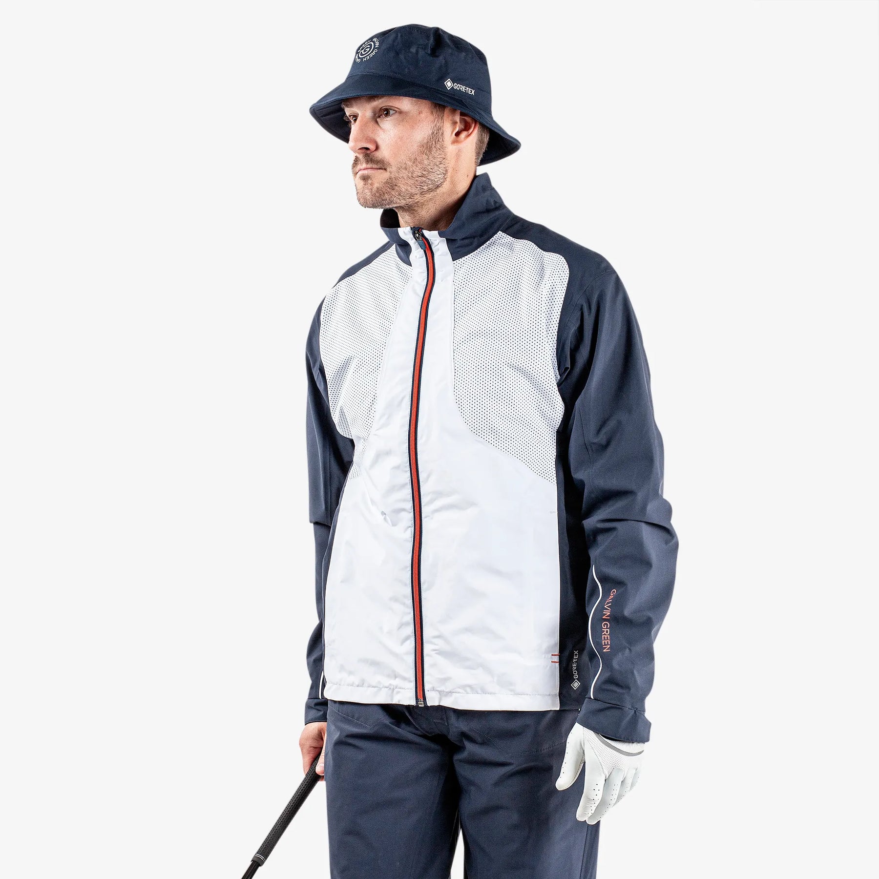 Albert is a Waterproof golf jacket for Men in the color White/Navy/Orange(4)