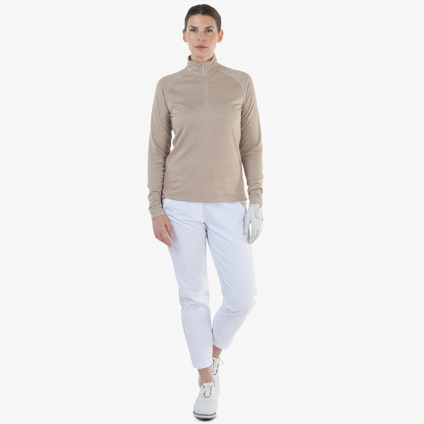Rated with warming effect #1, this women’s melange quarter zip offers the lightest, softest technologies, designed for maximum breathability and freedom of movement. It’s extremely breathable, lightweight, and quick dry, making it easy to wear in a variety of conditions, and to pack away in your golf bag when not needed.