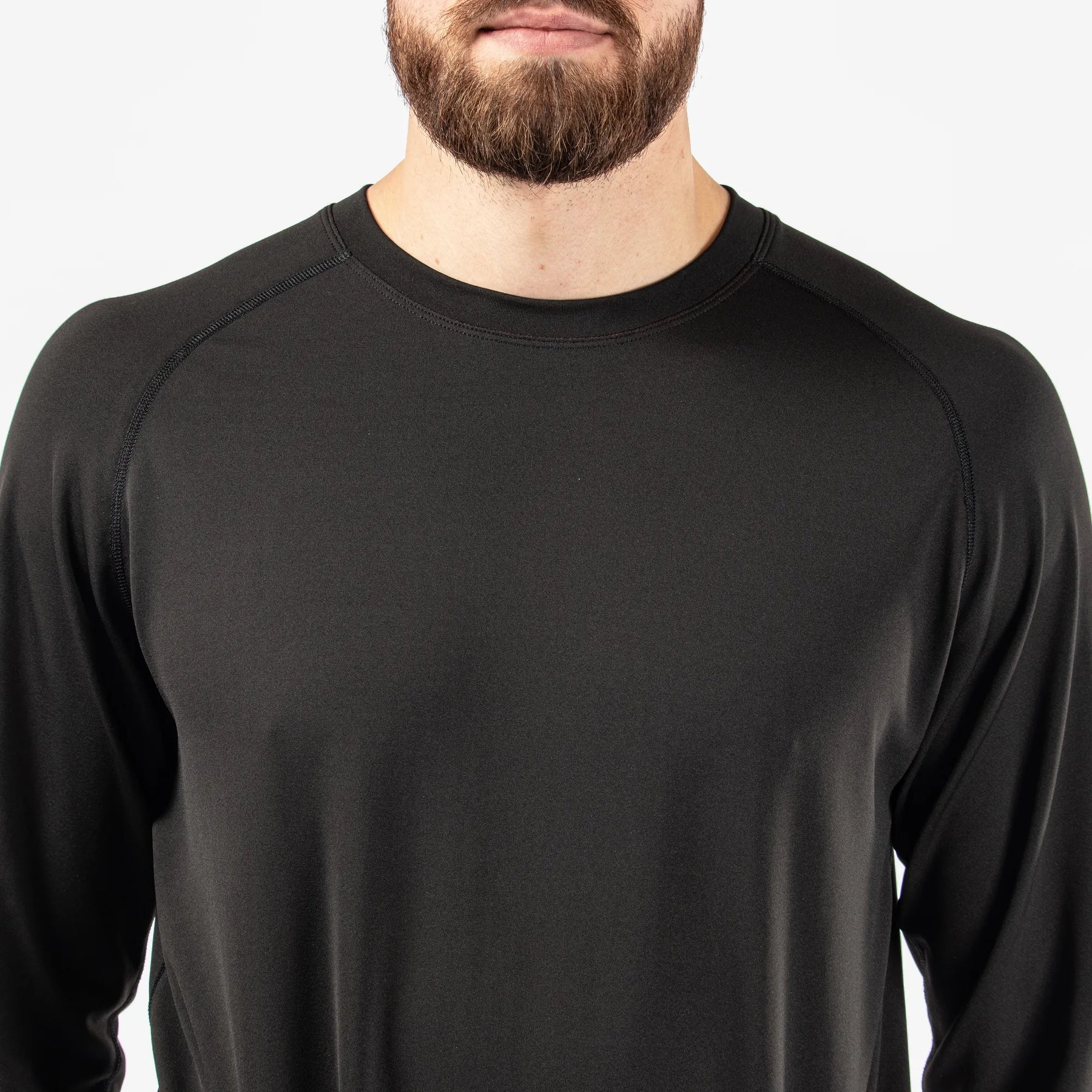 Perfect base layer for golf. Medium fits me snugly without being like compression gear - good to wear under a golf shirt. Large fits me well if wearing it as an outer layer. Material is smooth, so it doesn’t “catch” the way wool base layers do.