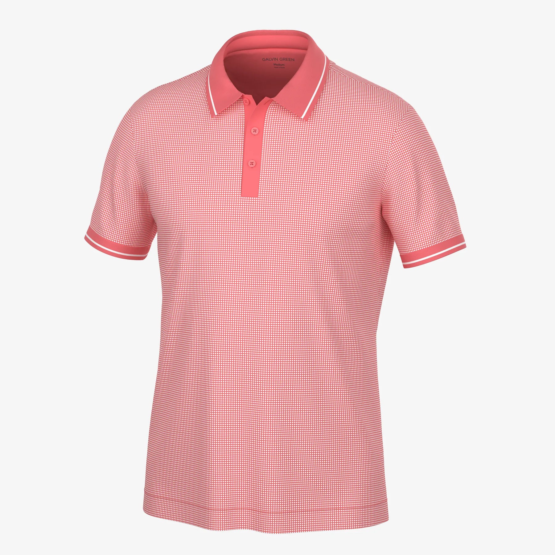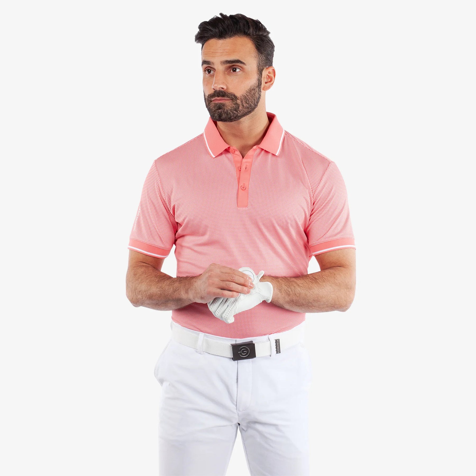 Miller is a Breathable short sleeve golf shirt for Men in the color Coral/White (1)