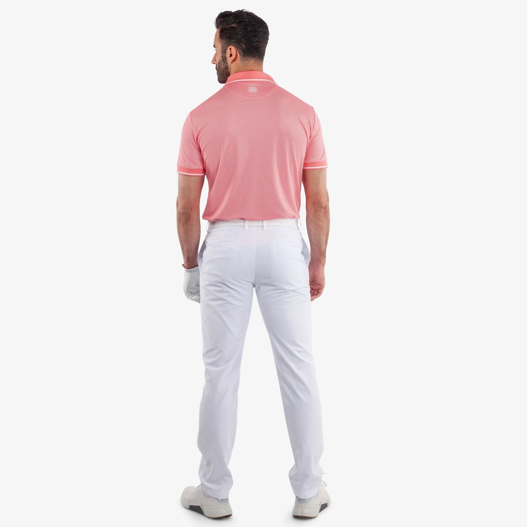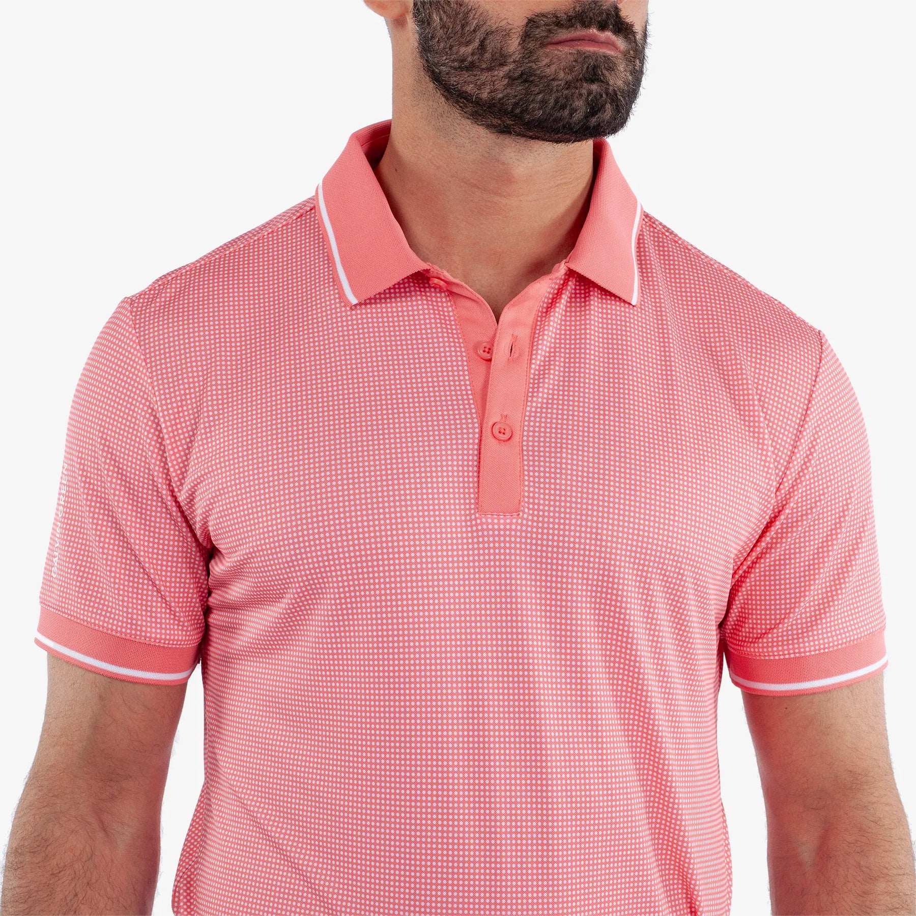 Miller is a Breathable short sleeve golf shirt for Men in the color Coral/White (8)