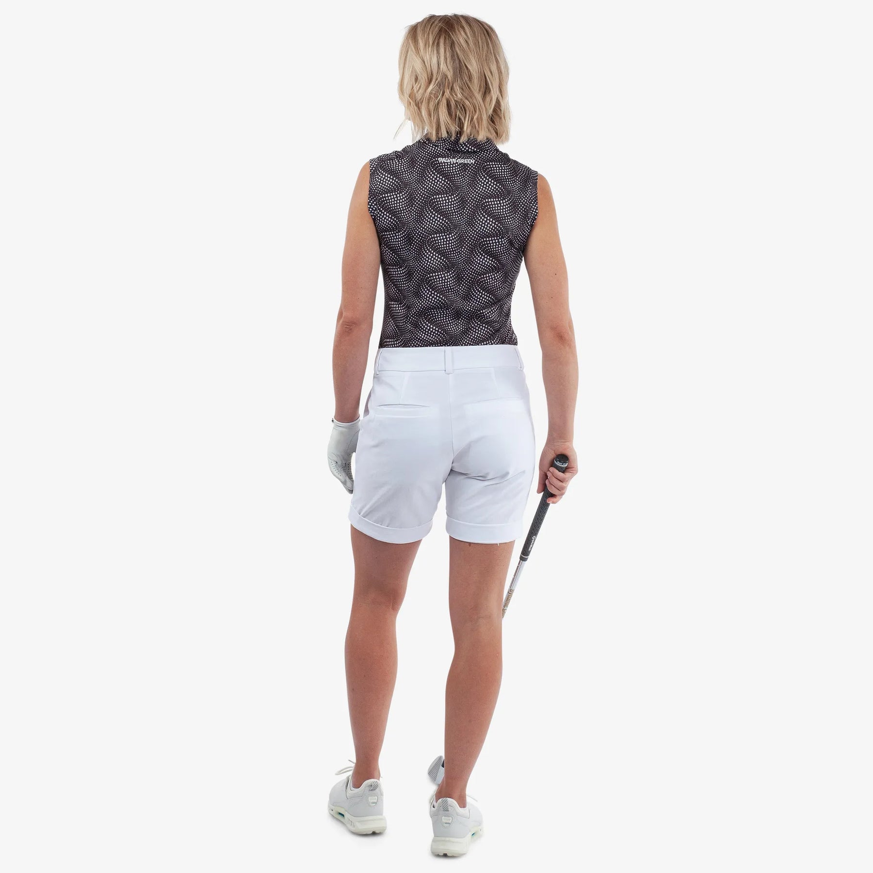 Made from a lightweight, breathable fabric, this sleeveless ladies’ golf shirt with print has built-in UV protection of 20+, offering extra cover on hot days. Quick to dry and virtually crease-free, this high-tech shirt is an ideal piece for warm weather golf.