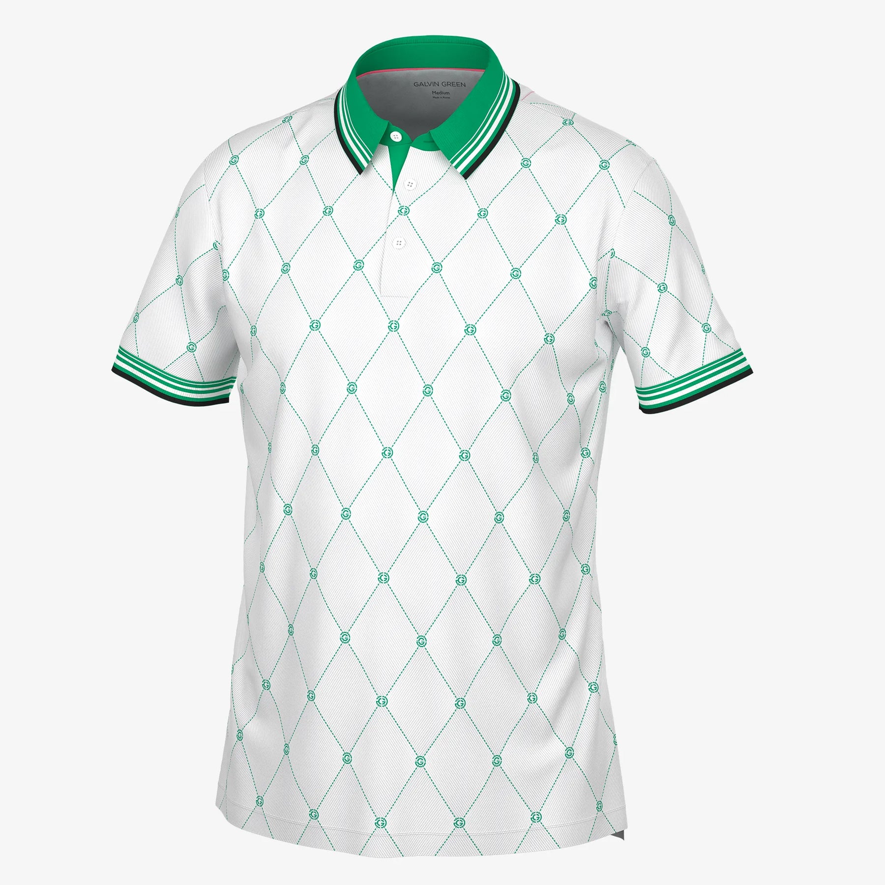 Miguel is a Breathable short sleeve golf shirt for Men in the color White/Golf Green(1)