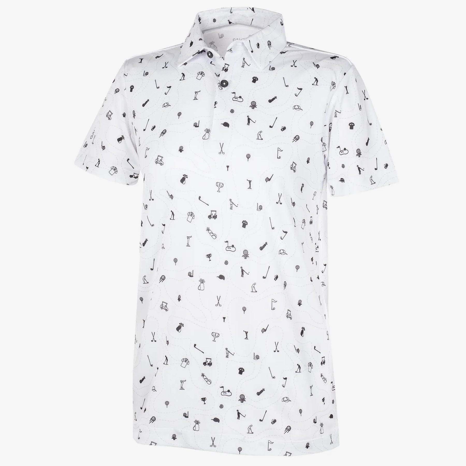 The Rowan printed kids polo shirt has a playful all over print with small icons of golf clubs, carts, golfers, and more. Designed for a young golfer but made with the same high-tech, performance details as the adult range, this shirt is made from an extremely breathable, quick dry fabric that offers UV 20+ protection.