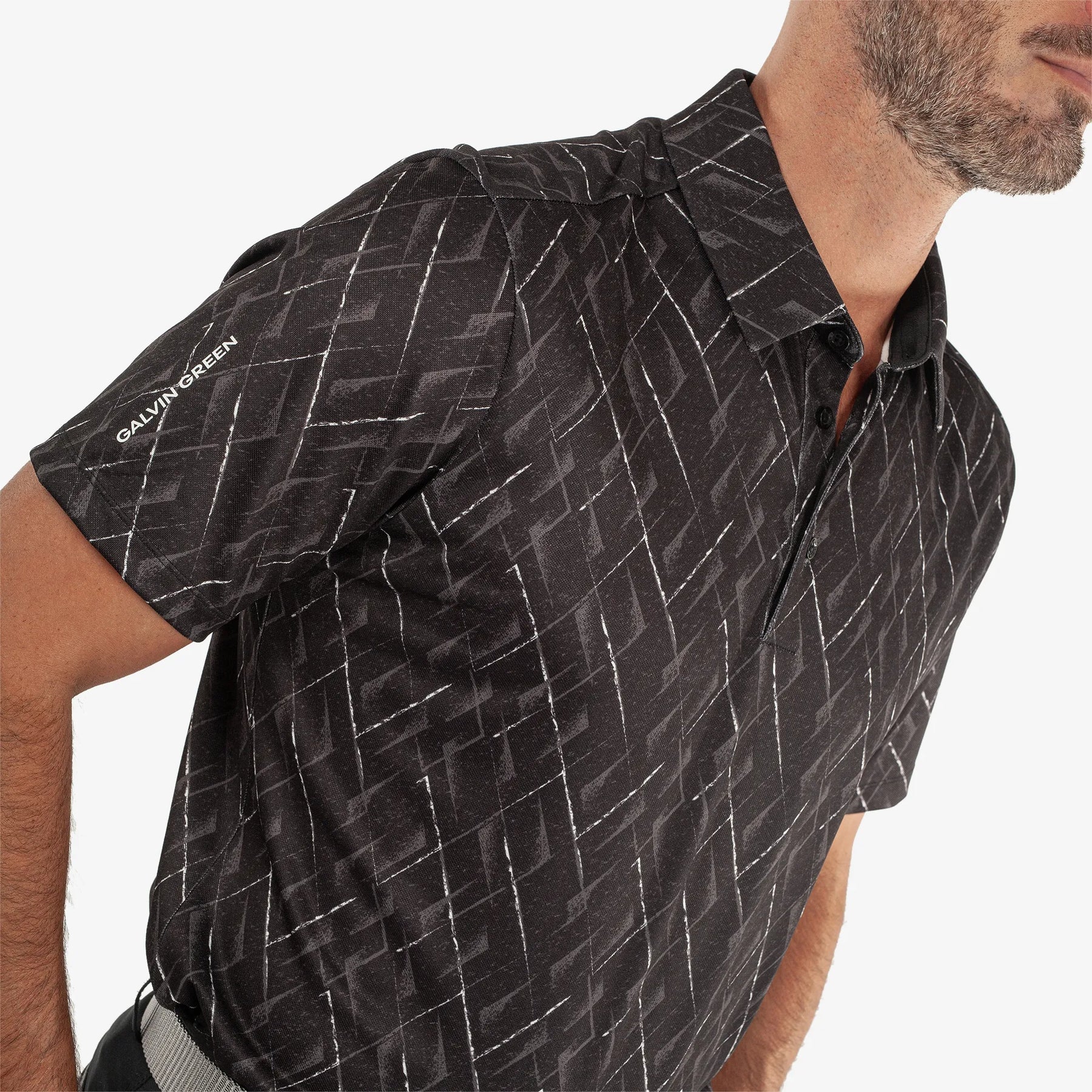 Introducing Mads, a breathable, lightweight shirt with an allover print featuring a deconstructed diamond argyle pattern. Made from a lightweight stretch fabric, it ensures an extremely breathable and quick-drying experience, keeping you comfortable throughout your game. With added UV protection (20+), a tailored collar, and a single fold sleeve hem, this shirt offers both style and functionality.