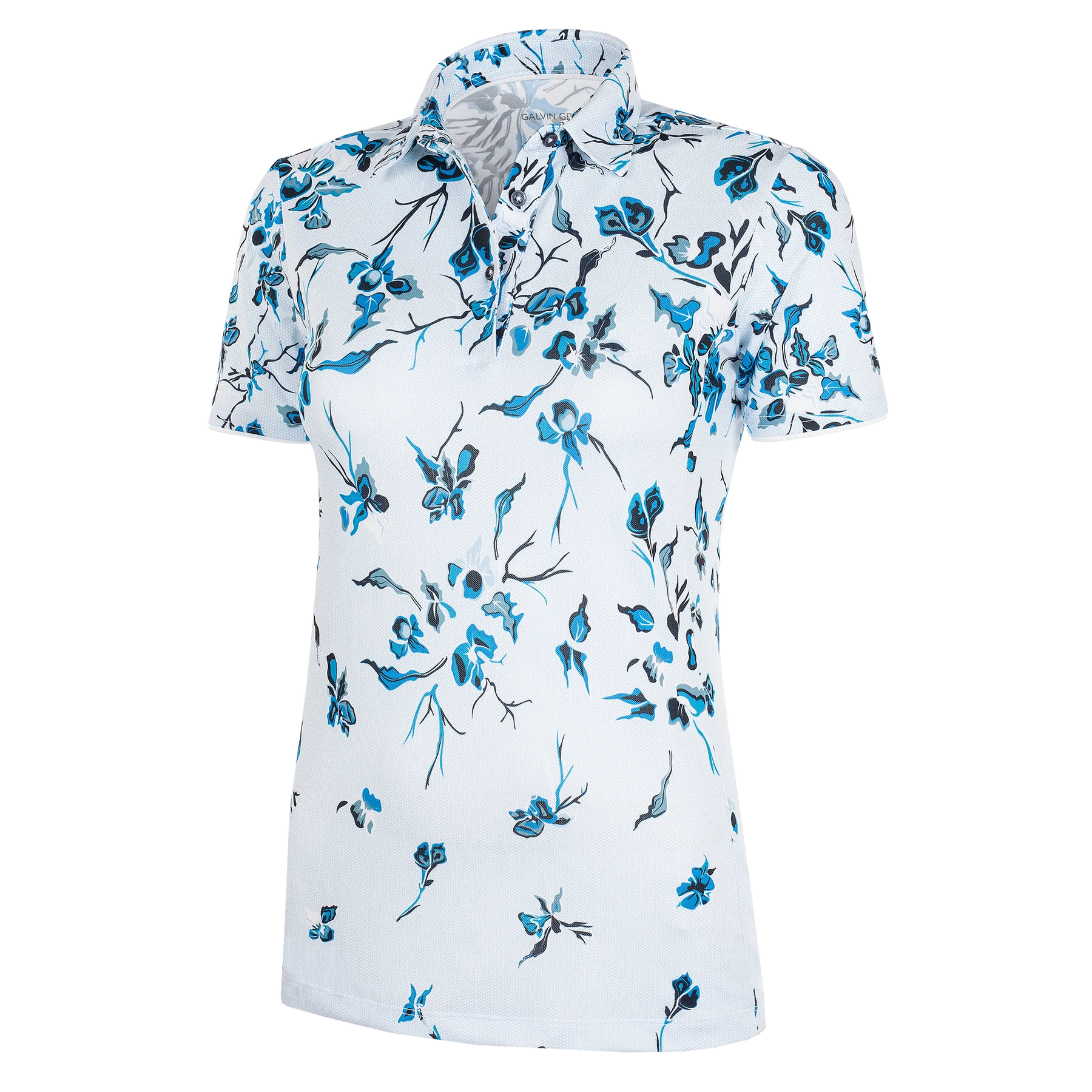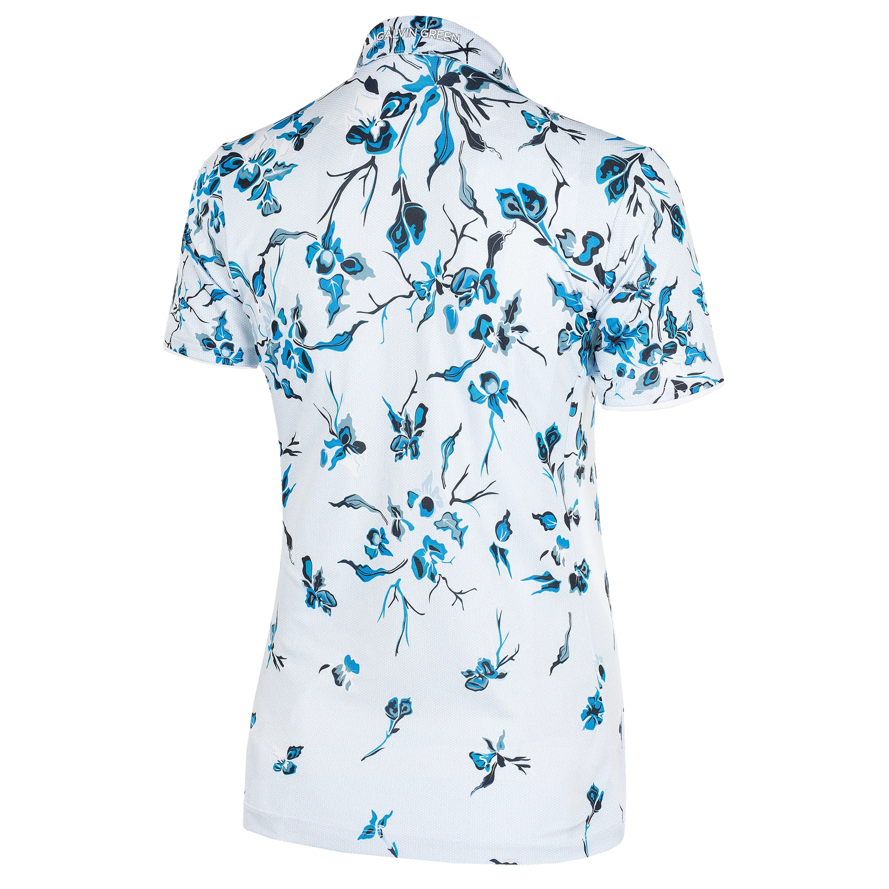 Women's short sleeved printed golf shirt. Includes UV protection to a factor of 20+.