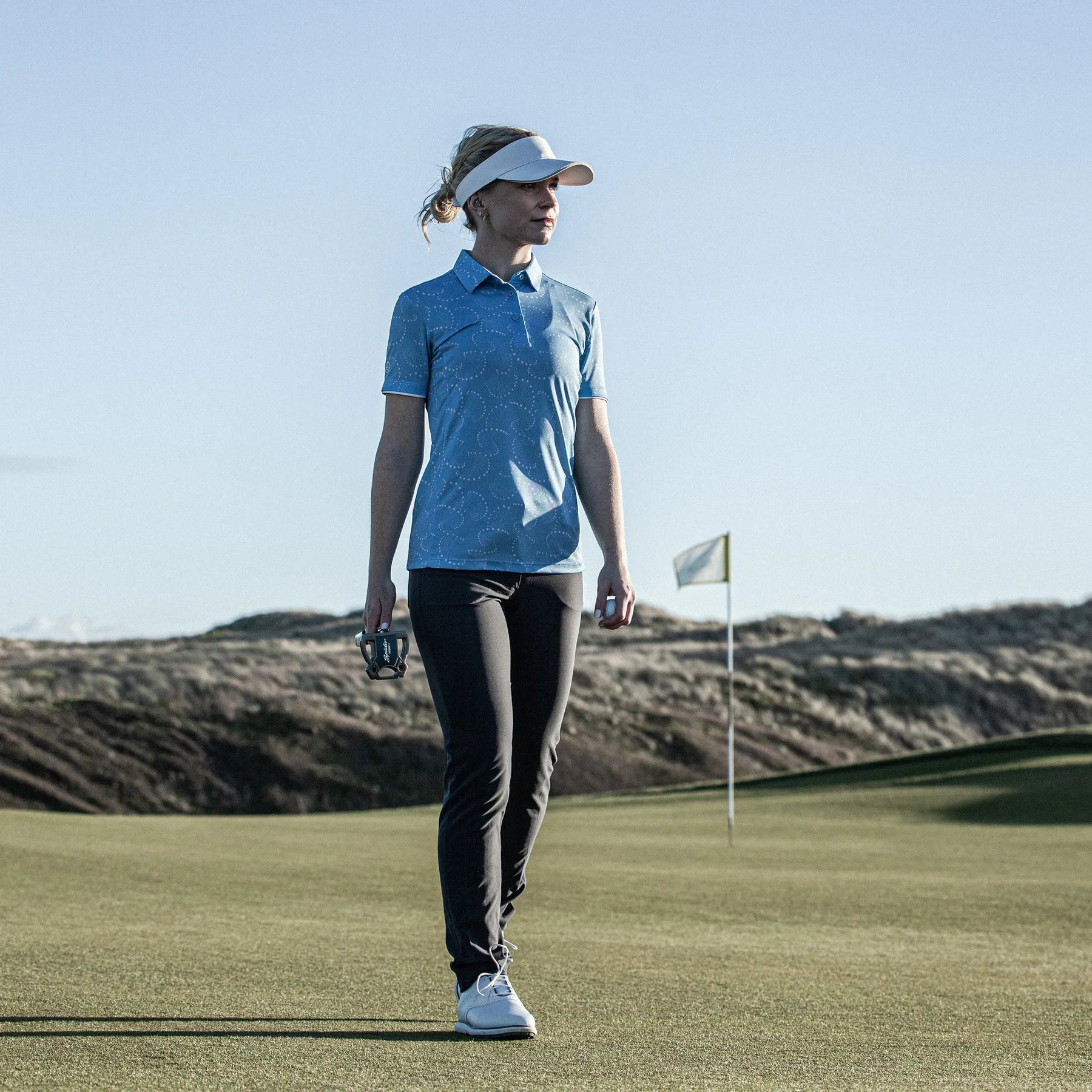 Mandy's print draws inspiration from DNA structures, featuring graphics that depict the movement of golf balls. Made from breathable VENTIL8™ PLUS fabric with UV 20+ protection, this women's shirt has a tailored collar and double cuff sleeve ends.