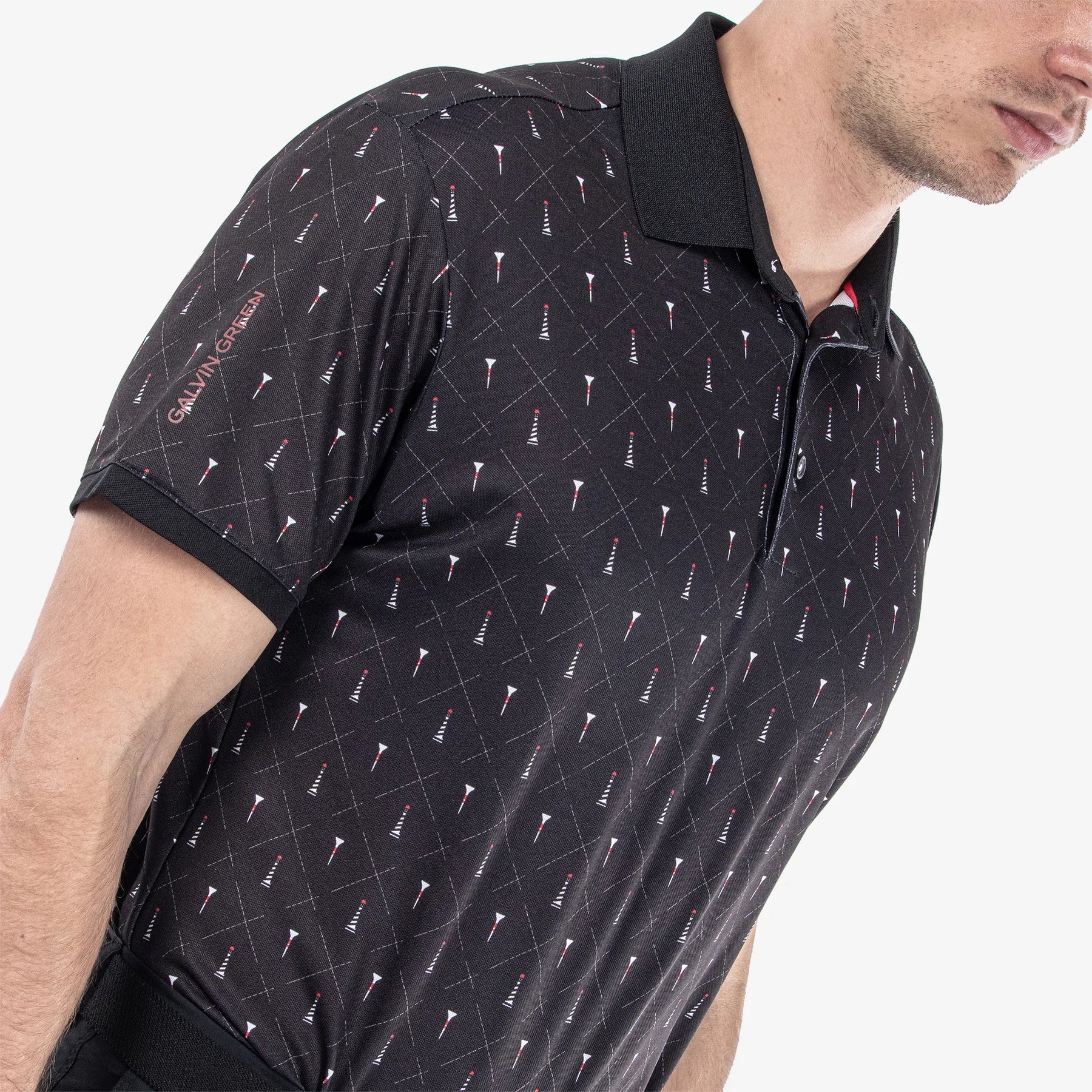 Tee up with a high-tech, lightweight, extremely breathable golf shirt from Galvin Green’s VENTIL8™ PLUS range. Manolo is a men’s tee print golf polo made from a soft, comfortable, stretch fabric that gives you comfort and freedom of movement on the golf course. Manolo features a geometric tee and lighthouse print, in a variety of seasonal and classic colours.