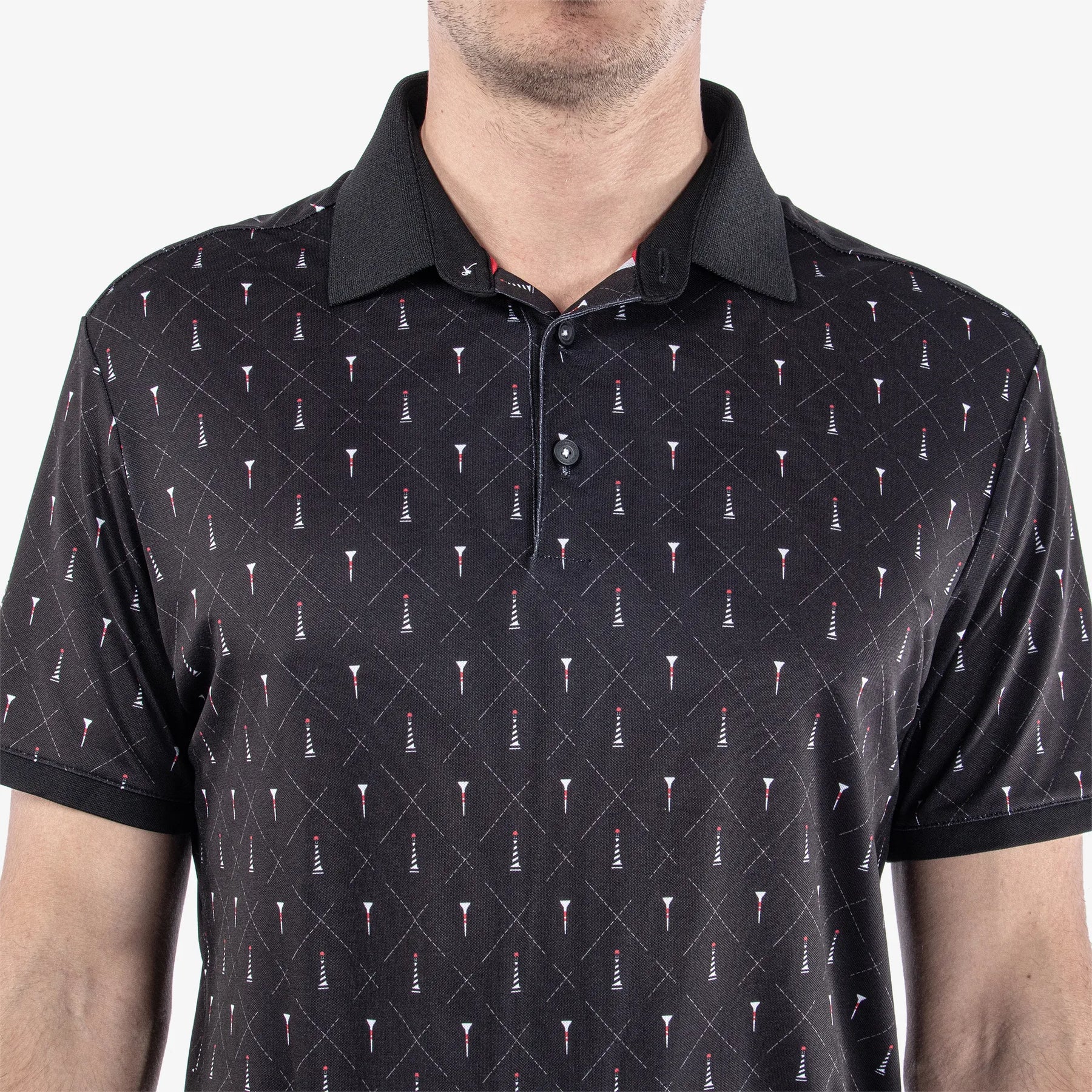 Manolo is a Breathable short sleeve golf shirt for Men in the color Black/White/Red(3)