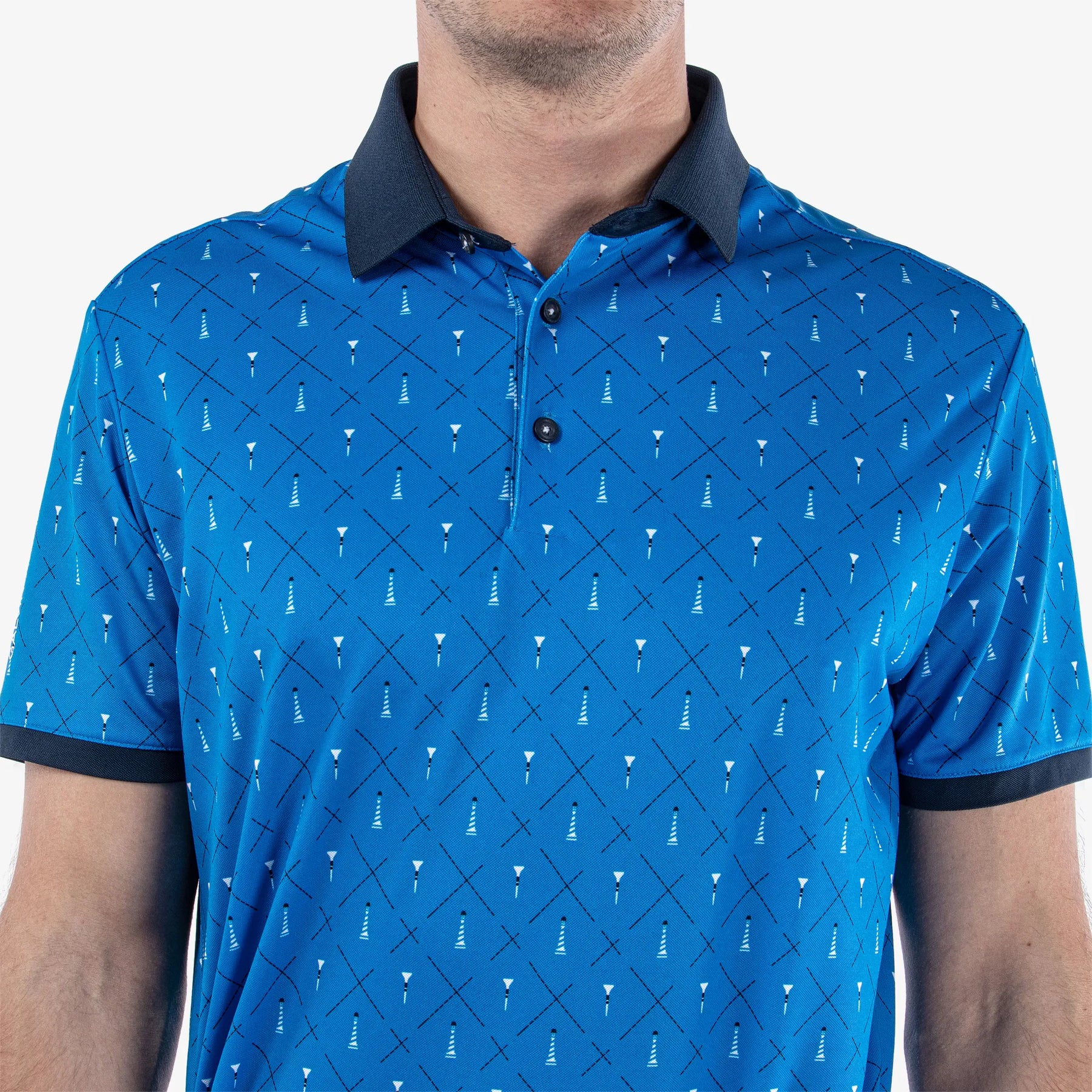 Tee up with a high-tech, lightweight, extremely breathable golf shirt from Galvin Green’s VENTIL8™ PLUS range. Manolo is a men’s tee print golf polo made from a soft, comfortable, stretch fabric that gives you comfort and freedom of movement on the golf course. Manolo features a geometric tee and lighthouse print, in a variety of seasonal and classic colours.