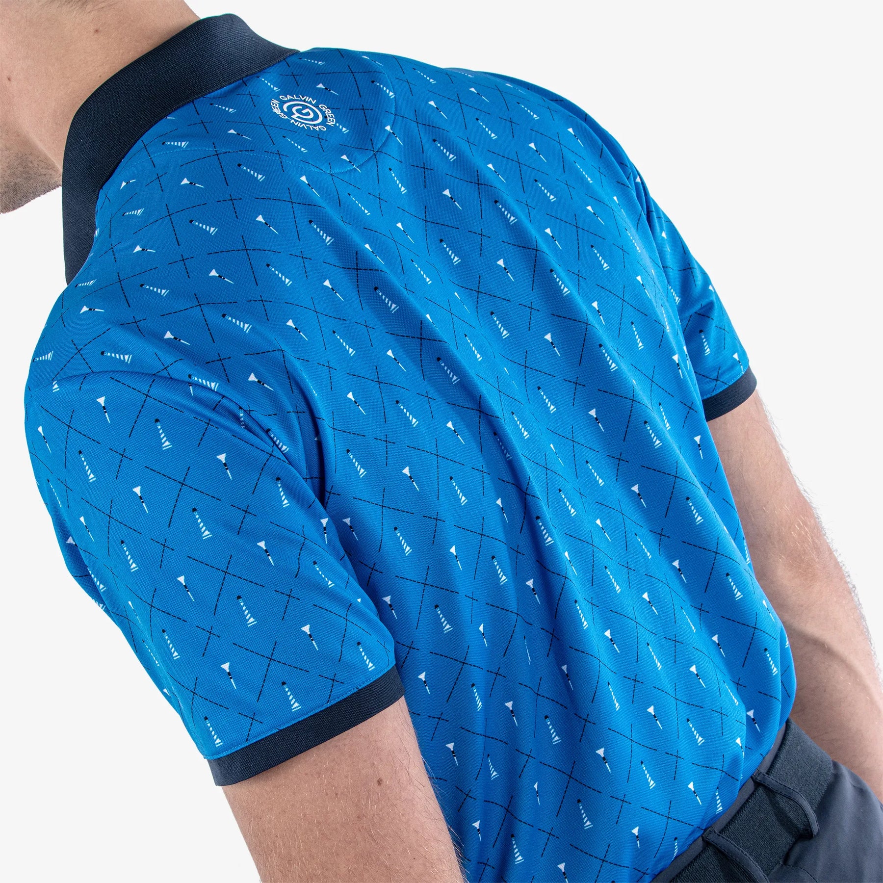 Manolo is a Breathable short sleeve golf shirt for Men in the color Blue/White/Navy(7)