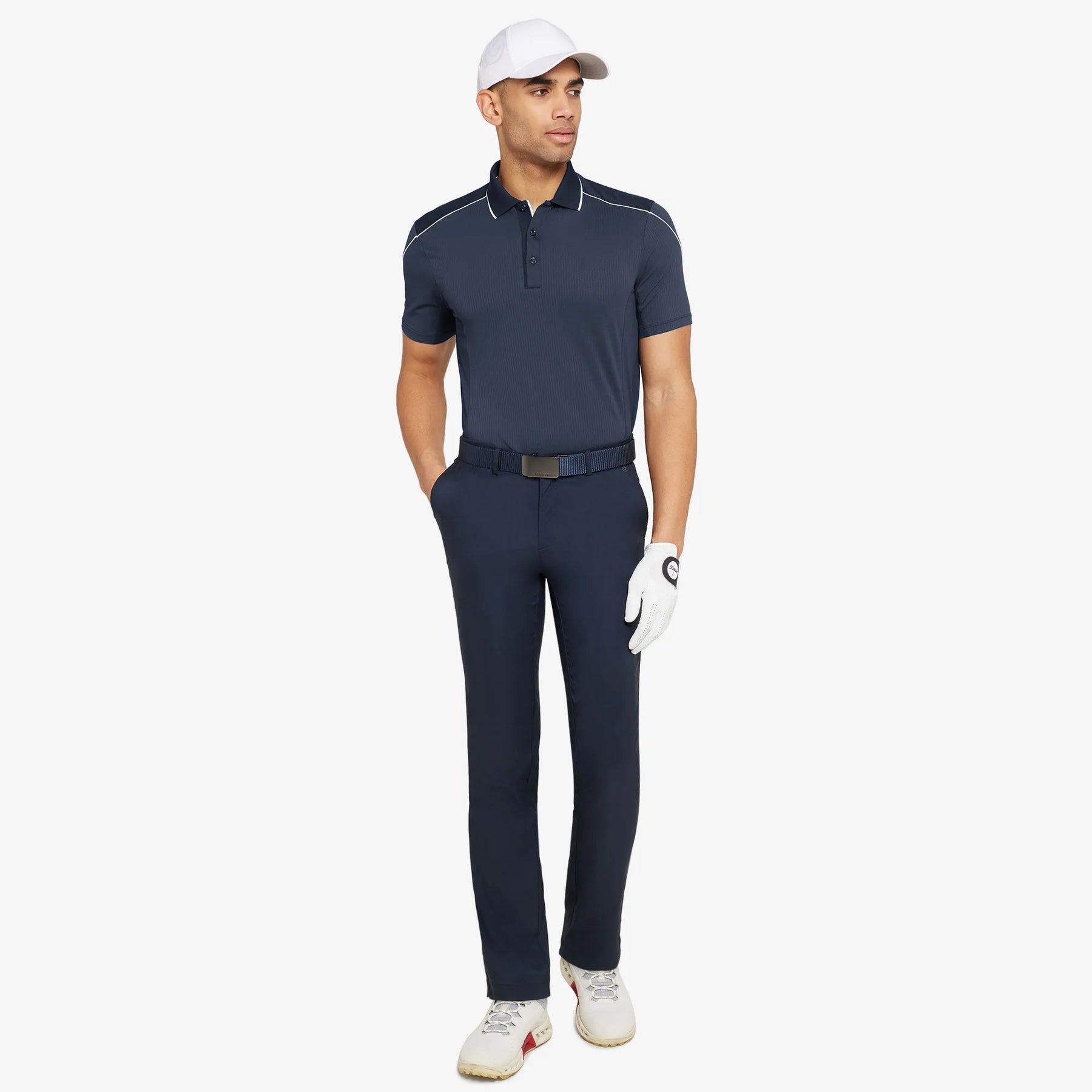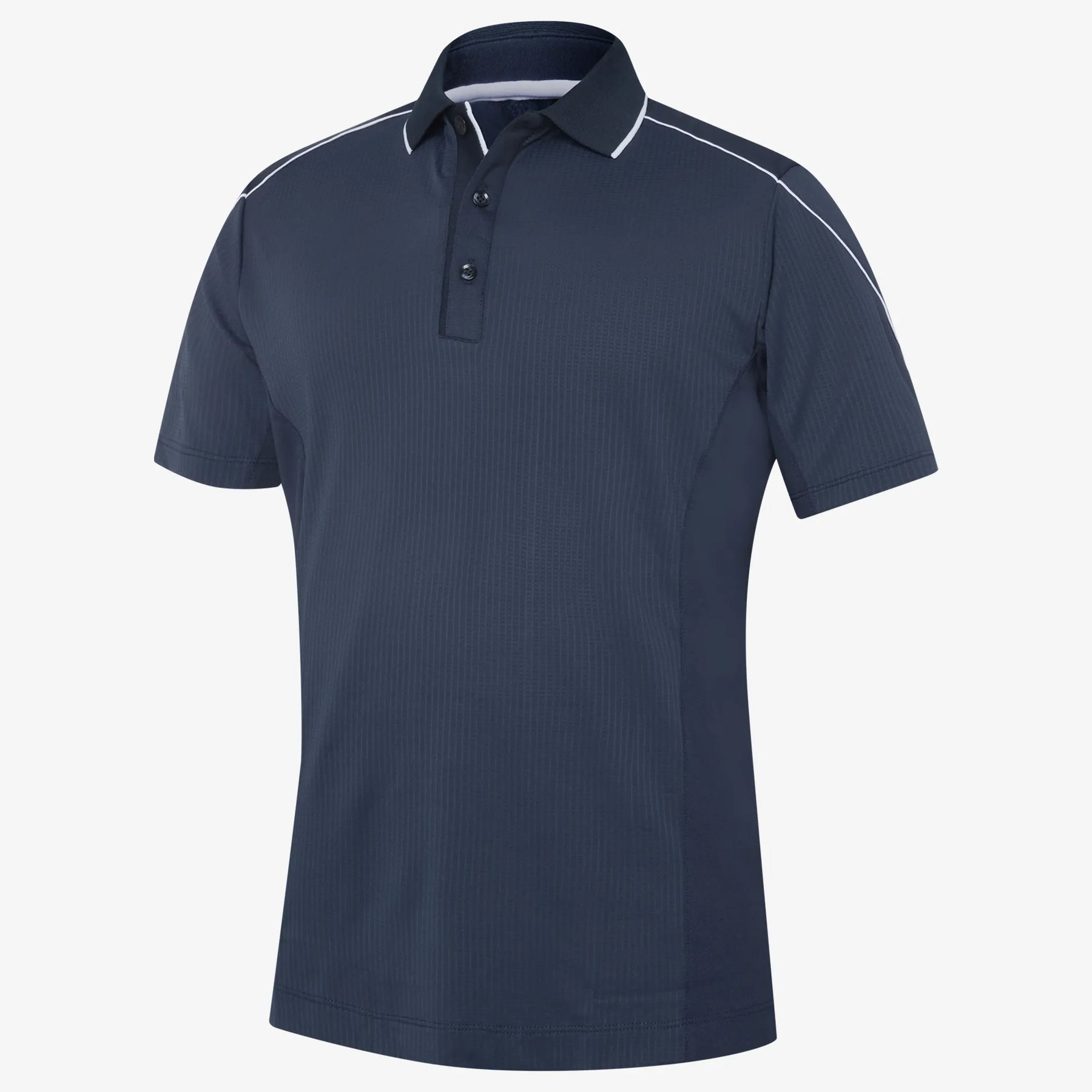 The Monte polo shirt features a ribbed collar with a contrasting stripe, colour-blocked front and back panels, and a bold centre-back stripe for a modern twist on a classic design. Featuring VENTIL8™ PLUS technology, it delivers extreme breathability, rapid moisture wicking, and UV 20+ protection in a soft, stretchy fabric. Finishes include a tailored collar and single‑fold sleeve hem.