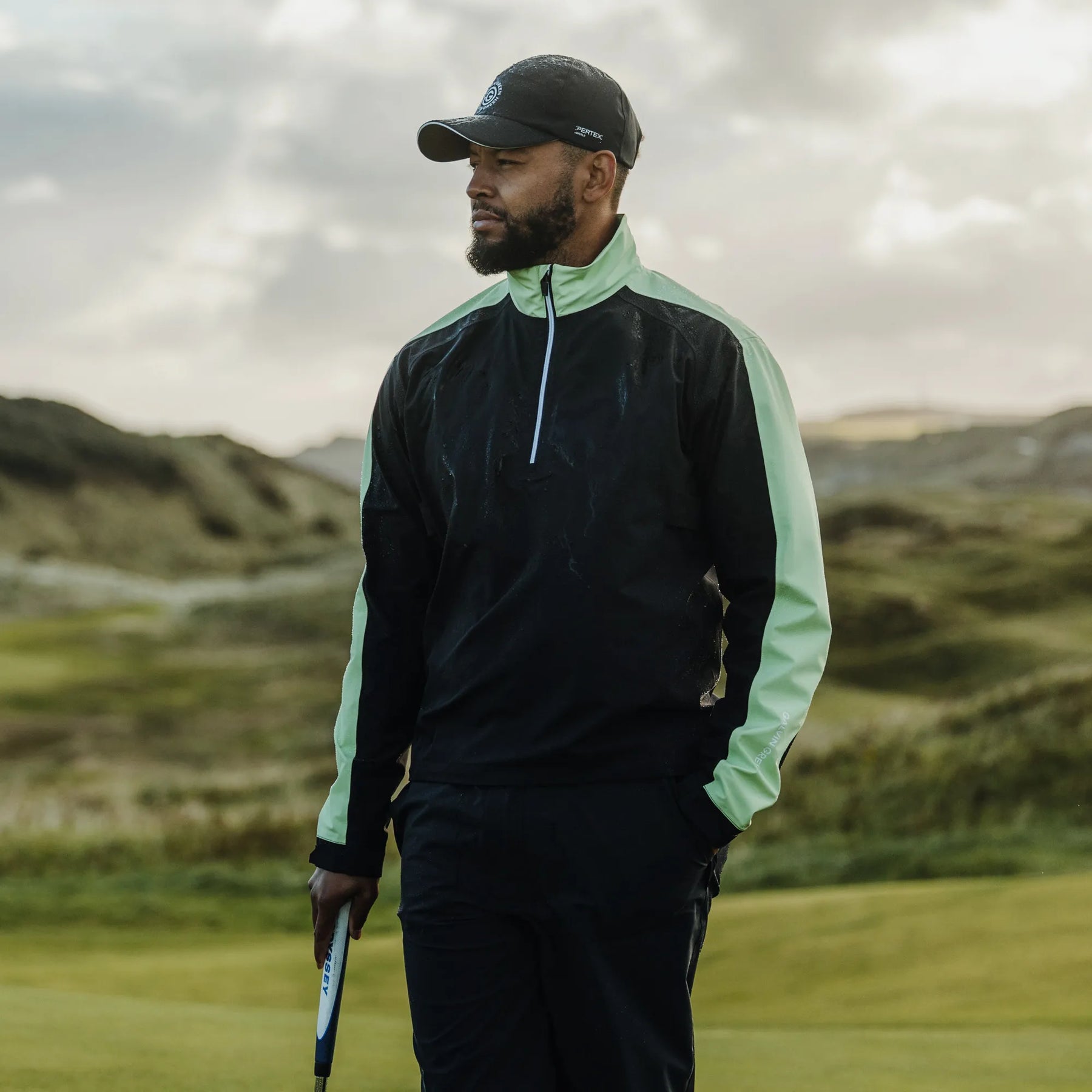Described as “the new gold standard for golf waterproofs” — Galvin Green’s Pertex Shield collection showcases the next generation of golf rain gear. The Adam half zip waterproof jacket merges the performance features of a high-tech golf jacket with the ease of a pullover. Made from Pertex Shield 3-layer stretch fabric, this lightweight, breathable jacket keeps you dry and comfortable. Garment features include chest tabs that reduce the bulk at the front of the jacket during your swing, and repositioned side seams to reduce friction.