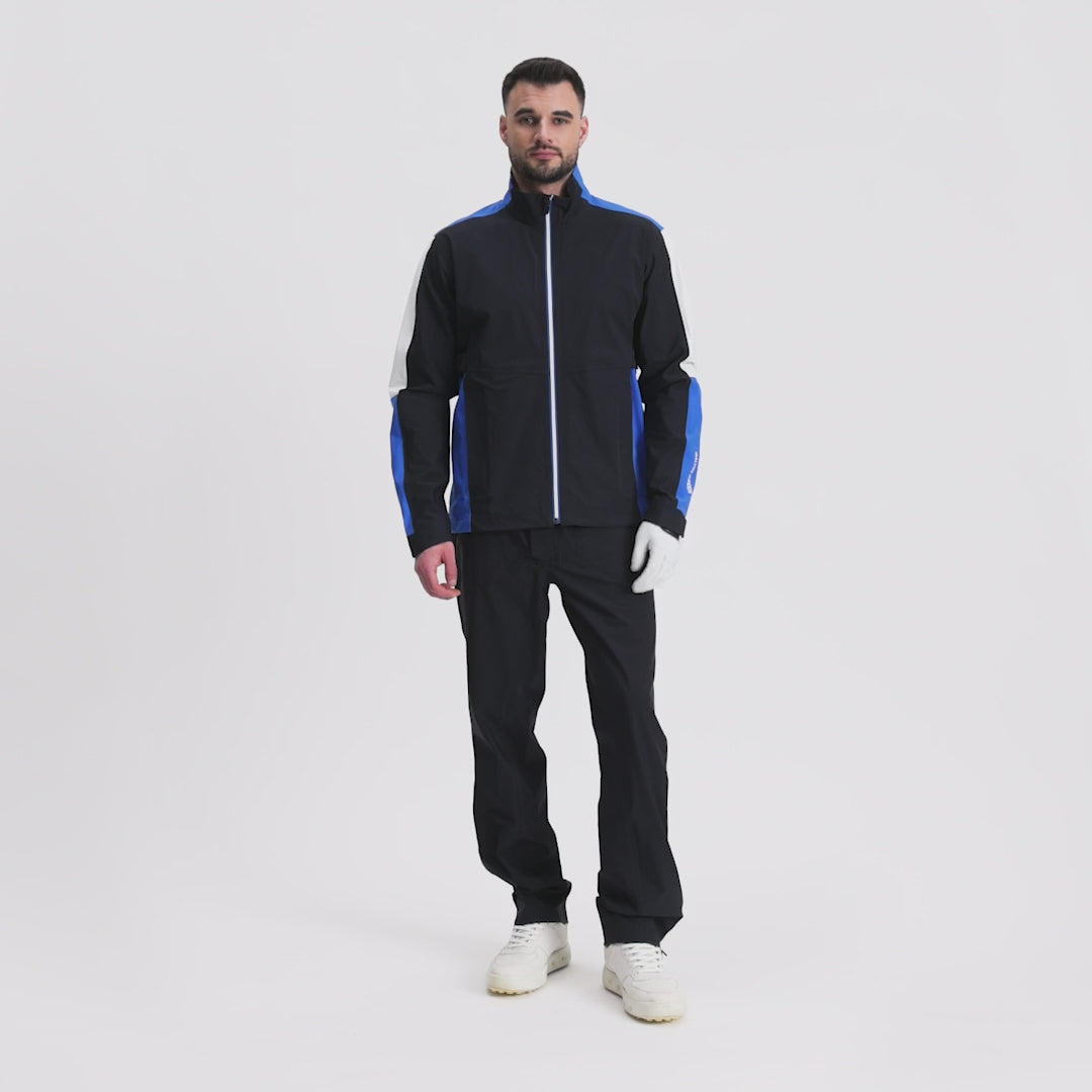 The Arlo hero jacket combines modern design with the reliable performance of Galvin Green’s award-winning rain gear. Made from Pertex® Shield 3-layer stretch fabric, this jacket is 100% waterproof, windproof, and highly breathable, ensuring you stay dry and comfortable during wet rounds. The sleek, contrasting panels offer a modern look while maintaining functional performance.