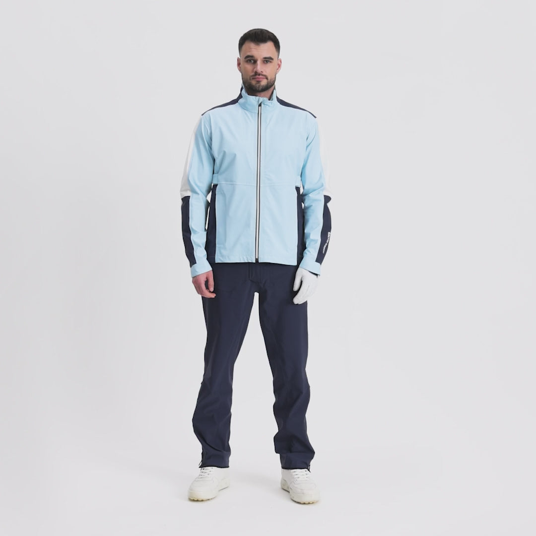The Arlo hero jacket combines modern design with the reliable performance of Galvin Green’s award-winning rain gear. Made from Pertex® Shield 3-layer stretch fabric, this jacket is 100% waterproof, windproof, and highly breathable, ensuring you stay dry and comfortable during wet rounds. The sleek, contrasting panels offer a modern look while maintaining functional performance.
