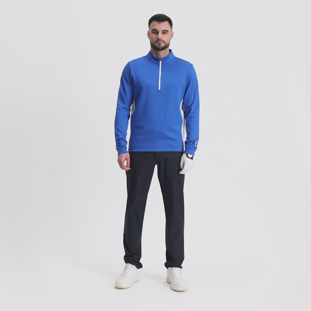 Introducing Don, a half-zip pullover mid layer crafted with a new Warming Effect #1 fabric. This lightweight, smooth fabric offers a soft surface inside and out, providing excellent next-to-skin comfort. Designed to be worn as an extra layer on warmer days or under a jacket for added warmth, the Don mid layer combines breathability and quick-dry properties to keep you comfortable throughout your round. Its stretch fabric allows for freedom of movement, while the soft handfeel ensures comfort during active play.
