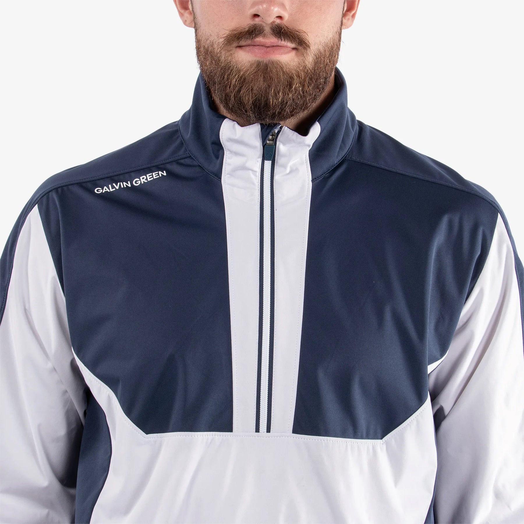 Lawrence is a Windproof and water repellent golf jacket for Men in the color White/Navy(4)