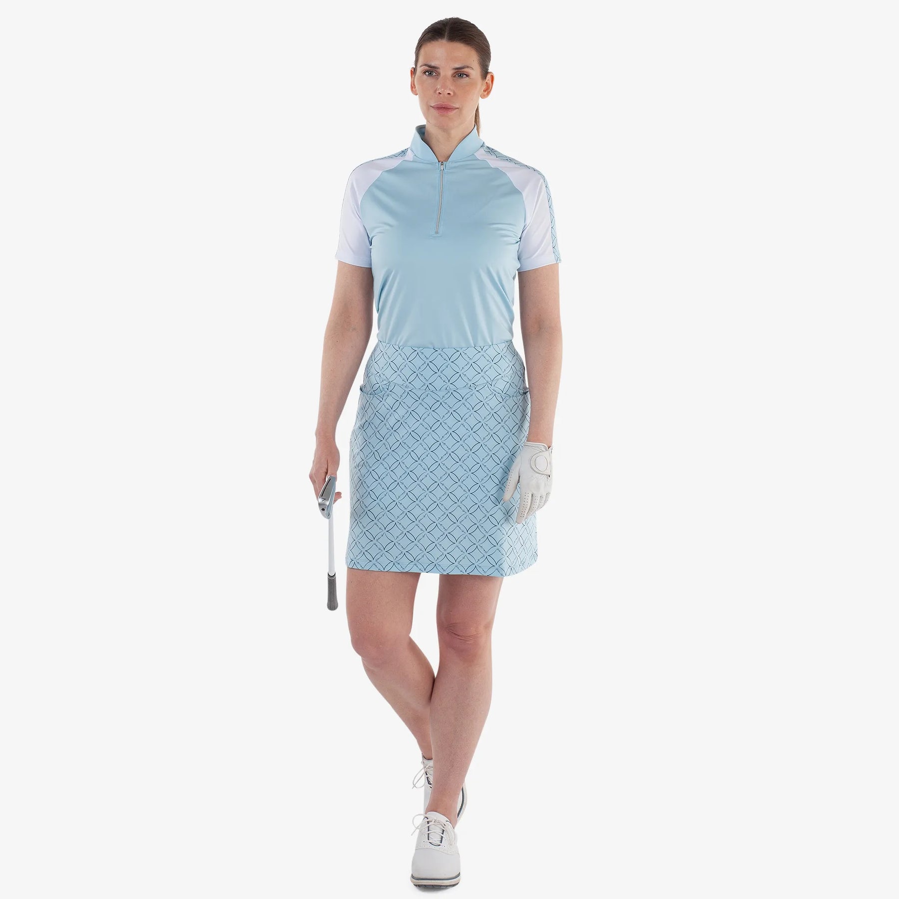 Miley is a Breathable short sleeve golf shirt for Women in the color Crystal Blue/White(1)