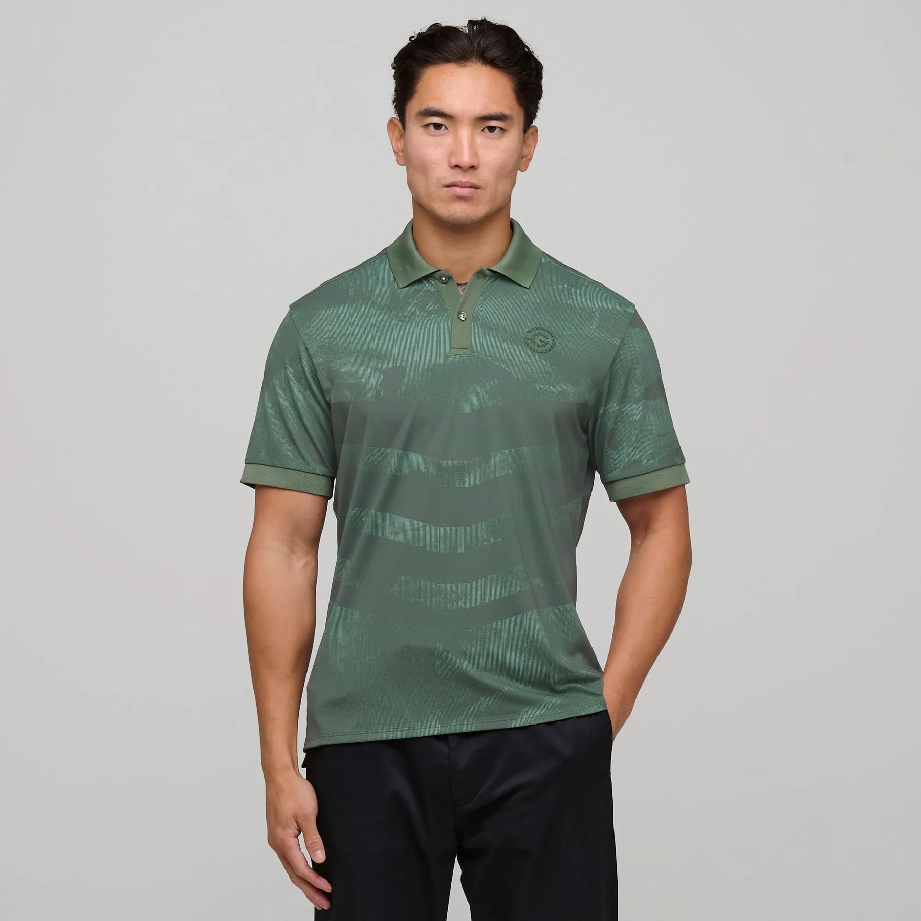 The Mirza VENTIL8™ PLUS has the performance fit and high-tech fabric you've come to expect from a Galvin green golf shirt, but its unique front V pattern and back logo placement make it stand out. This lightweight, breathable shirt has a ribbed collar and sleeve cuff, and a short placket with only two buttons.