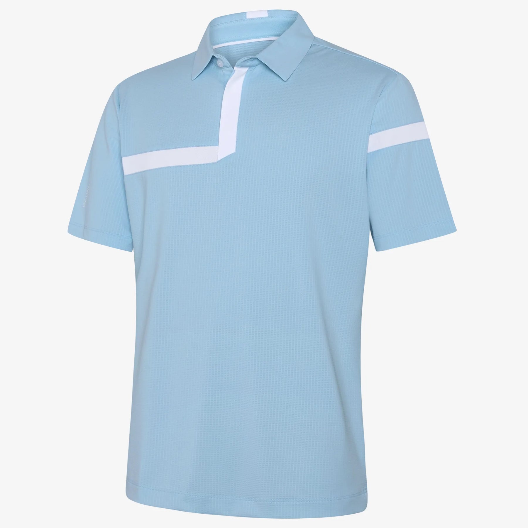 The Morley golf shirt offers a modern, sporty look with a contrasting angled inset stripe on the front and sleeves. Designed for breathability and comfort, this shirt is quick-drying and made with stretch fabric for ease of movement. Features include a tailored collar and single fold sleeve hem, while UV protection 20+ keeps you shielded from the sun.