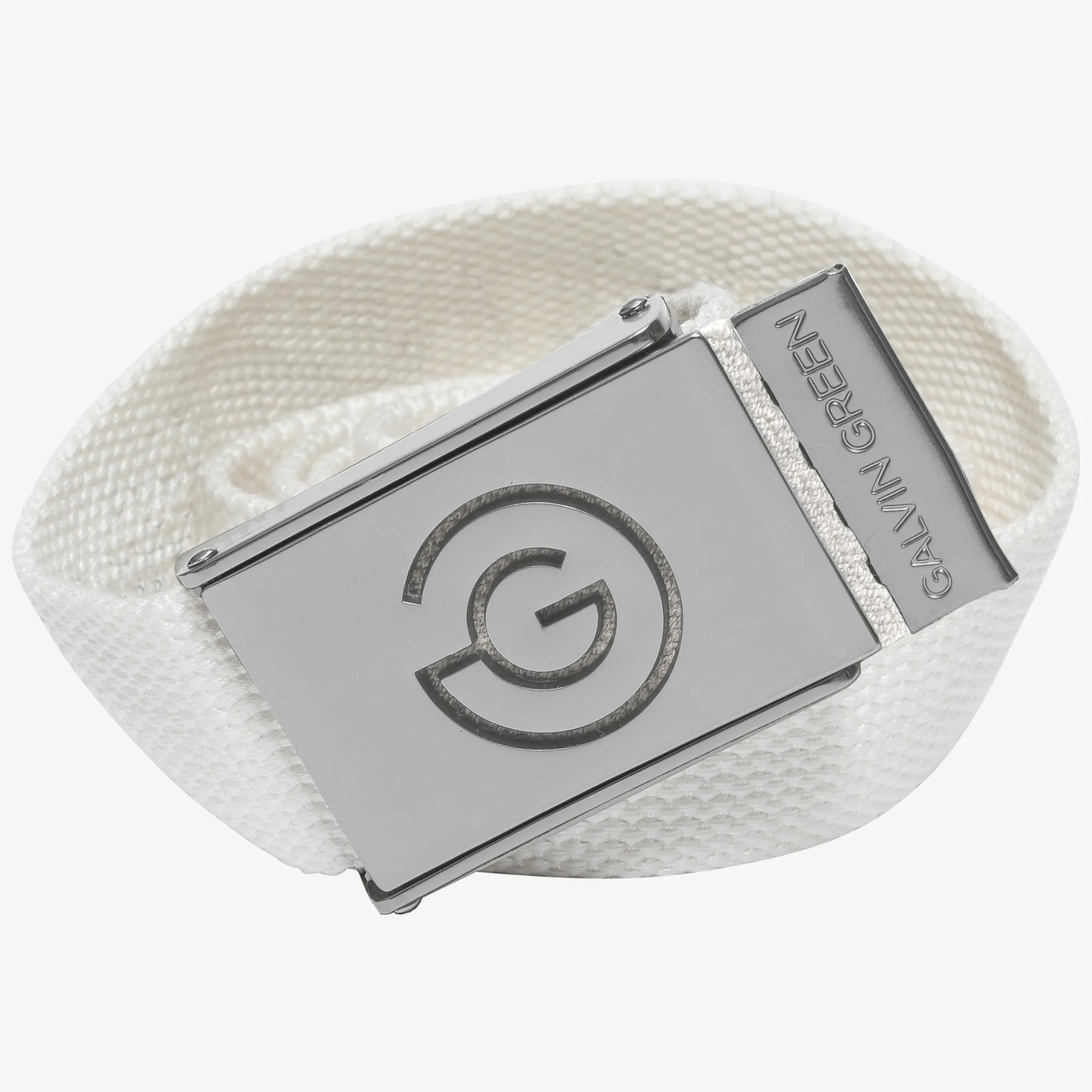 Warren is a woven golf belt with a cutout logo metal buckle,